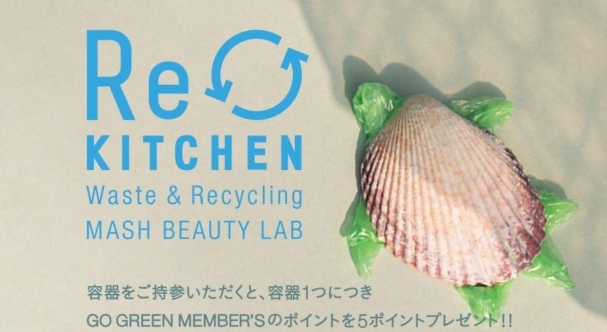 使い終わった空容器を回収する「リサイクル キッチン」プログラム。コスメキッチンでご購入いただいた空容器をご持参いただくと、容器1つにつきGO GREEN CARDのポイントを5ポイントプレゼント。