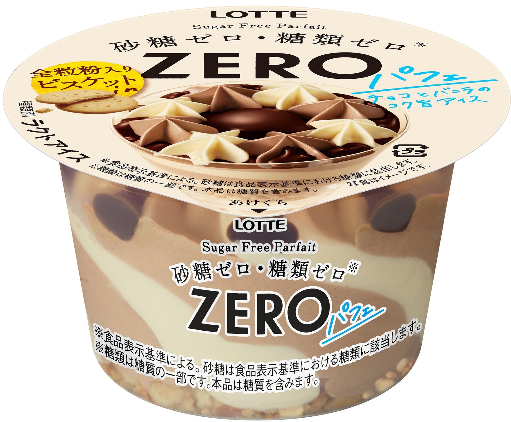 株式会社ロッテは、砂糖・糖類ゼロ*のアイス「ZERO パフェ」を発売いたします。砂糖・糖類ゼロ*なのにバニラとチョコの2色のアイス、食感のアクセントになるチョコレート、全粒粉入りビスケットが入っておいしく食べ応えがあるパフェアイスです。透明カップ入りで見た目も楽しめる「ZERO パフェ」。ゆったりとした自分時間のお供にぜひお試しください。