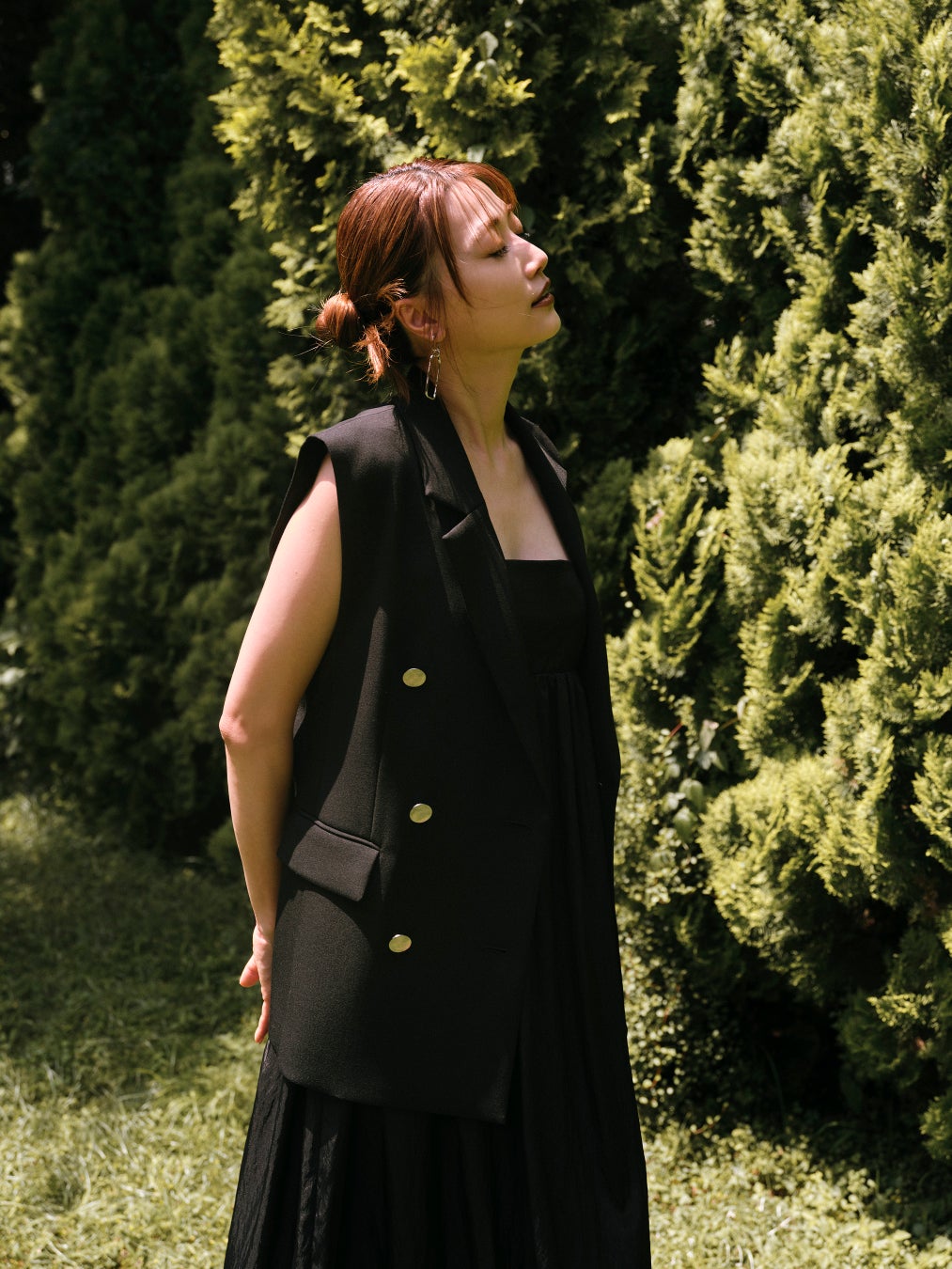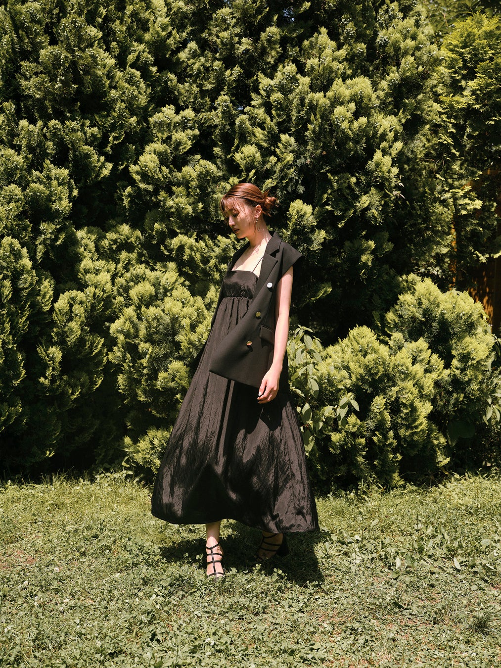 Gilet ¥23,100 / Dress ¥24,200 / Earrings ¥5,720 / Shoes ¥27,500