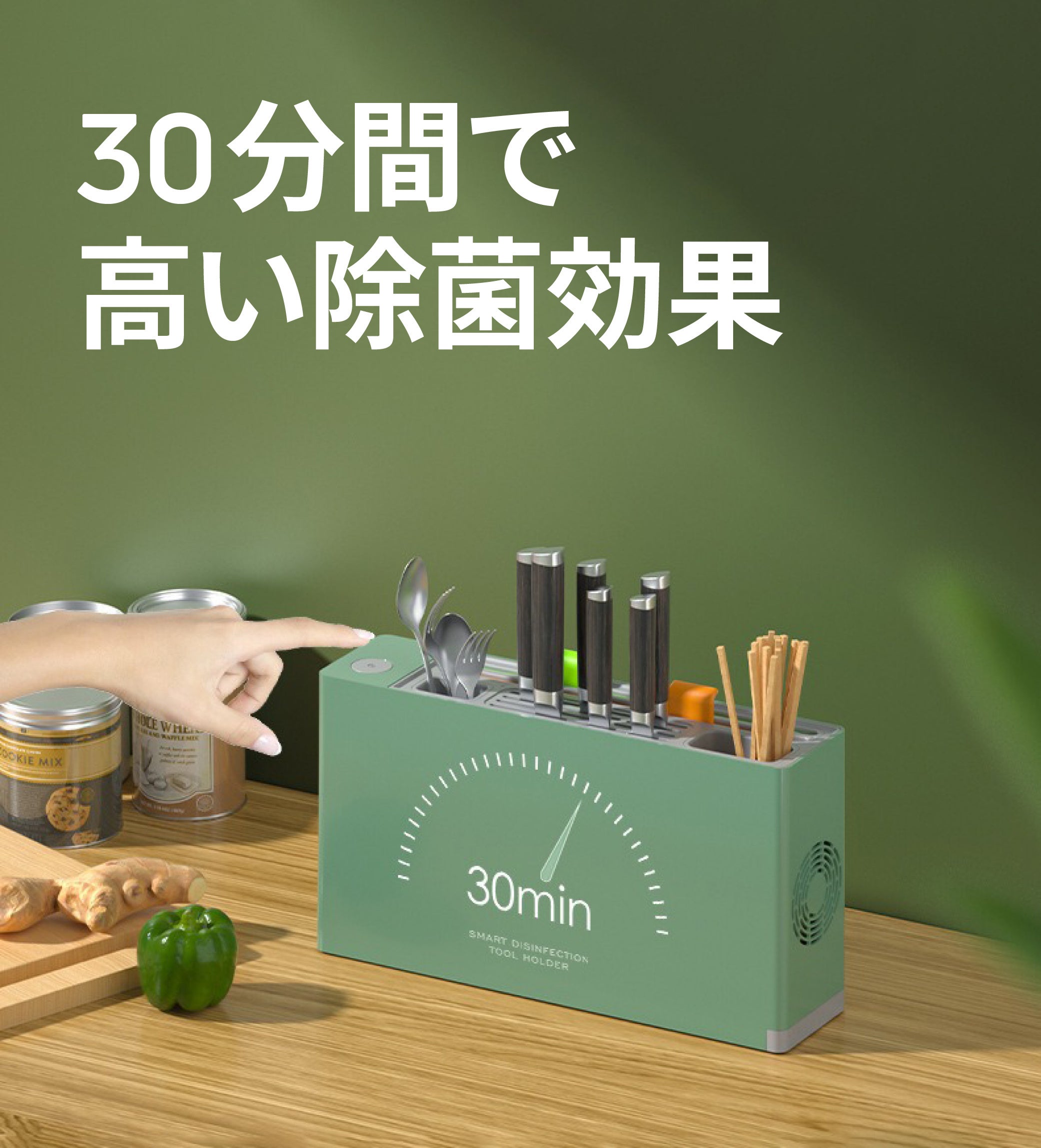 ワンタッチで簡単除菌!約30分間のUVライト照射で、調理器具をいつでも清潔に保てます。