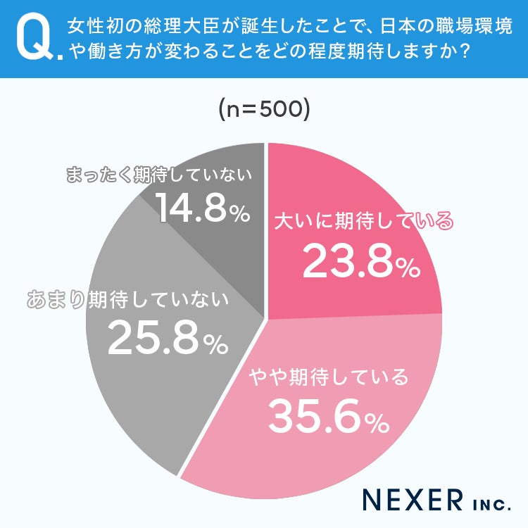 まずは女性初の総理大臣が誕生したことで、日本の職場環境や働き方が変わることをどの程度期待するかを聞いてみました。