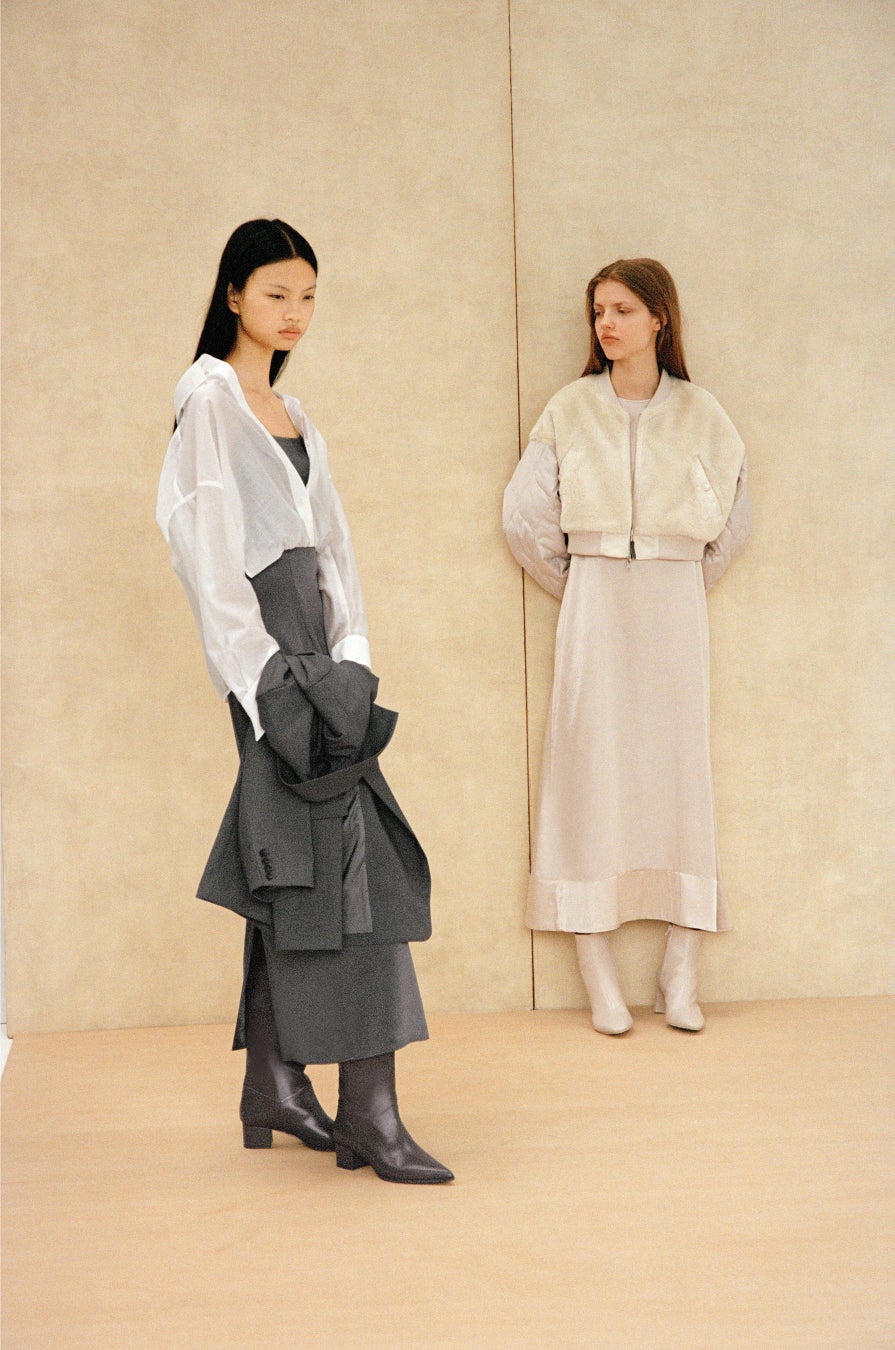 SNIDELが得意とする、フェミニンの中に秘めた力強さを漂わせる。