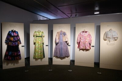 会場入り口では、展覧会メインビジュアルで着用された衣装が、みなさまをお出迎えいたします。