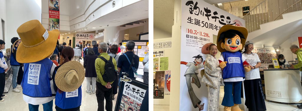 5月にここ増田町まんが美術館でお披露目式をし結成された「釣りキチ三平ごみ拾い隊」。増田町を皮切りに県内各所をまわり、沢山の方々とふれあい、楽しみながらの清掃活動を行ってきました。三平生誕50周年記念展では三平くんが取り組んできた活動をパネル展示され紹介されています。