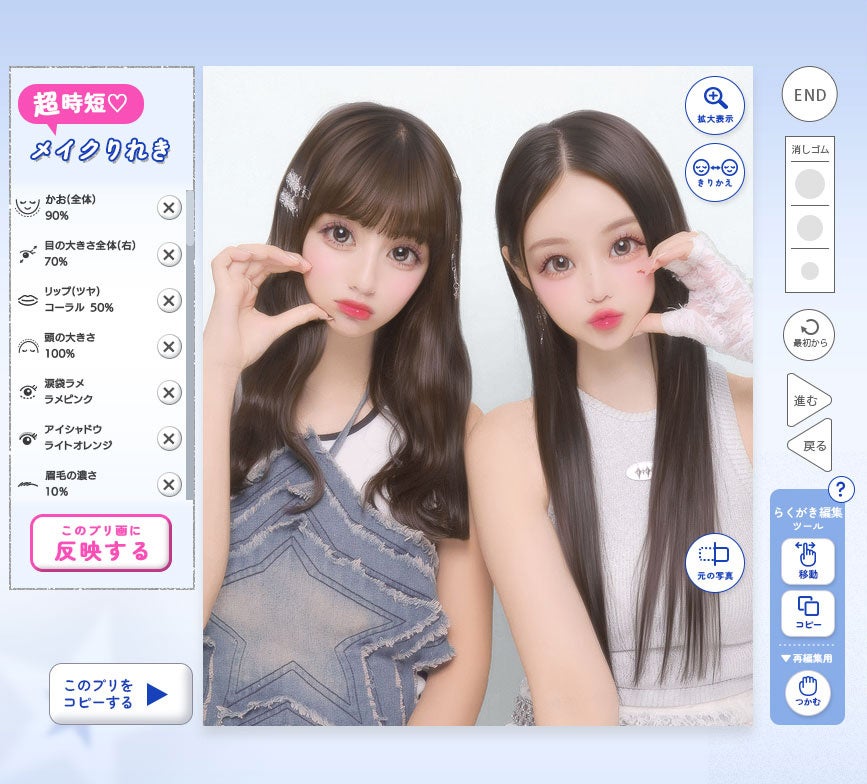 ■ユーザー待望の新機能!同じ画像を同時にレタッチ・メイクができるほか、シールにも落書きできるように