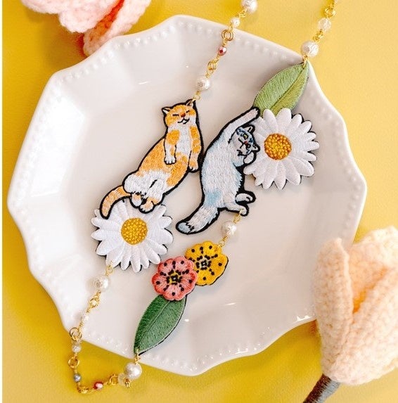 花畑でお昼寝するねこたちの首飾り 11,000円