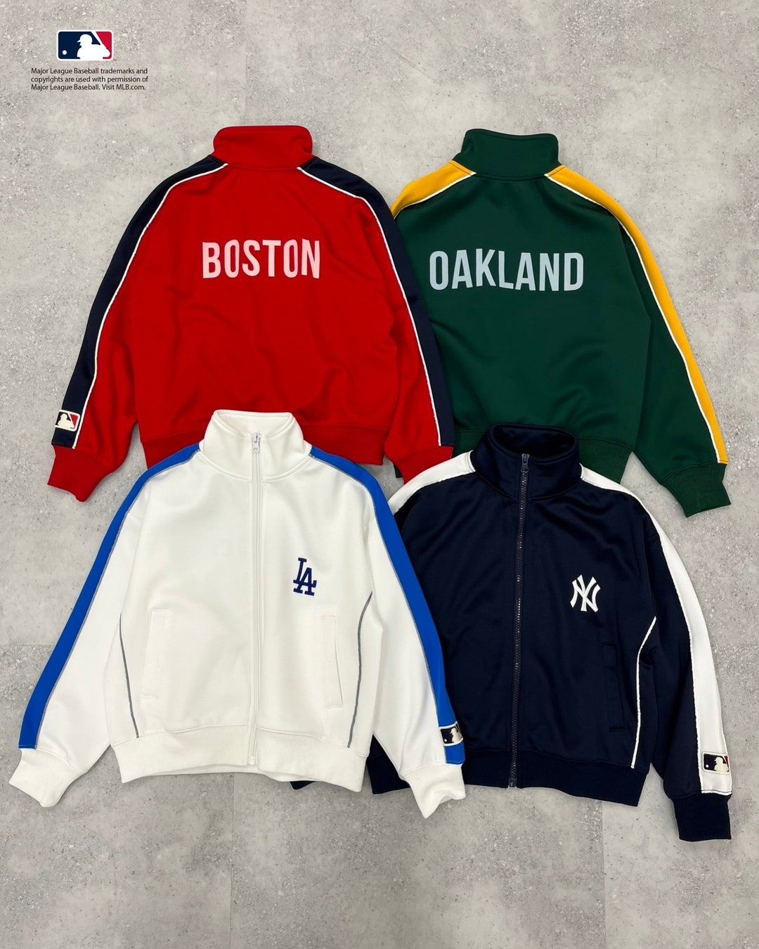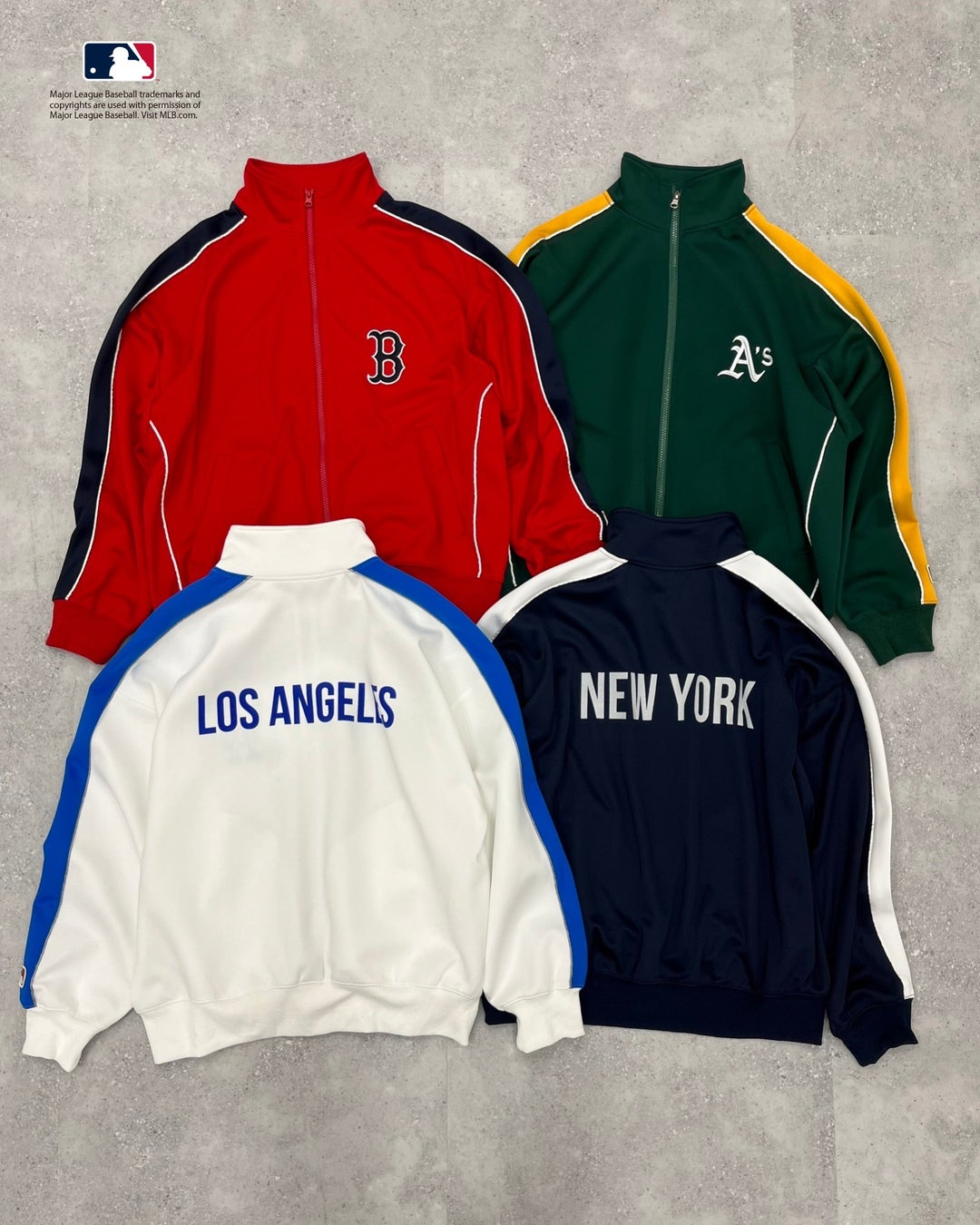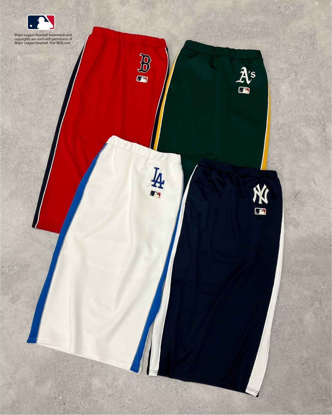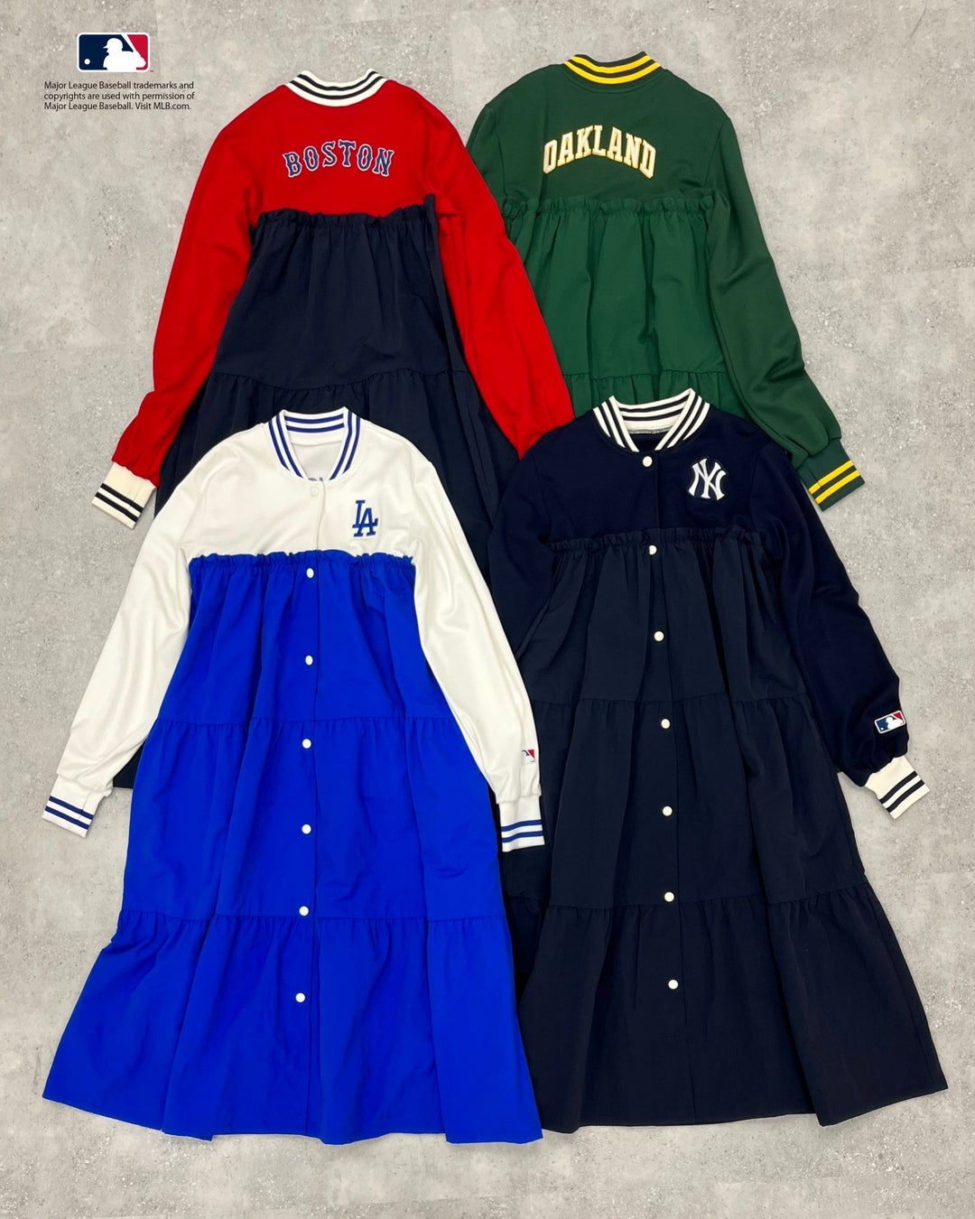 今回のコレクションでは、MLBに所属する「ロサンゼルス・ドジャース」、「ニューヨーク・ヤンキース」、「ボストン・レッドソックス」、「オークランド・アスレチックス」の4チームをピックアップ。従来のスポーツアイテムにはない、女性らしい要素を取り入れることで、いつものスタイルにプラスワンしやすいアイテムに仕上げました。オーバーサイズが今年らしい定番のベースボールシャツや、ミニワンピースとしても着られるスウェット、スタジャンとワンピースが合体したようなデザインワンピースに、トレンドのトラックジャージはセットで着られるタイトスカートもラインアップしました。キッズアイテムは一部レディースとお揃いのデザインで、リンクコーデも楽しめるアイテムを展開。メンズアイテムはユニセックスで楽しめるトレンドのサイズ感です。遊び心のあるデザインで、春先に向けて注目トレンドのスポーツMIXスタイルを楽しめるコレクションになっています。