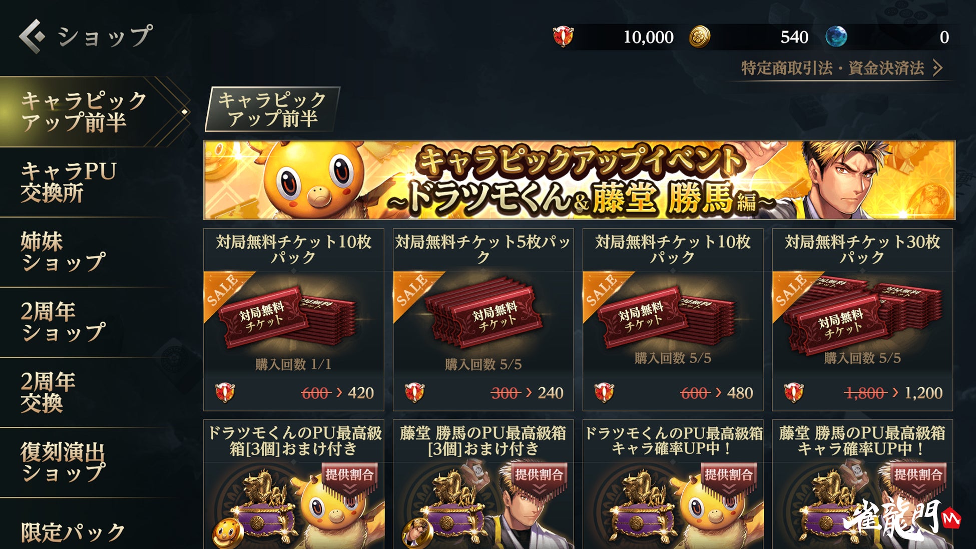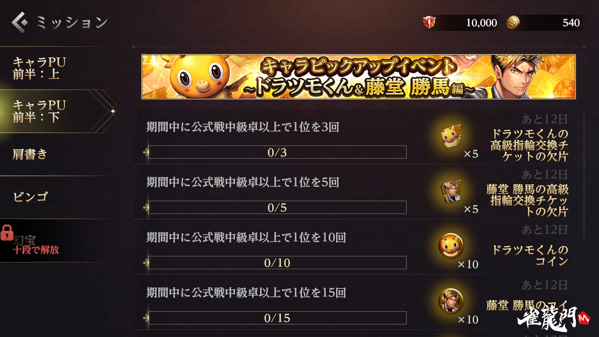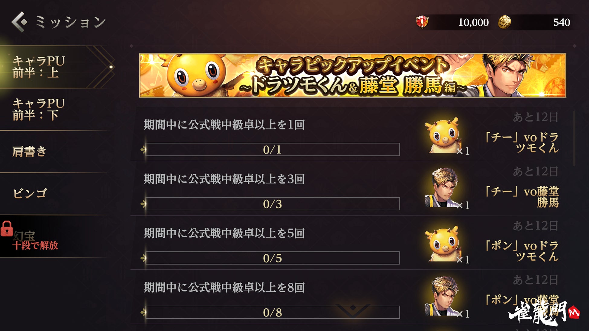 『雀龍門M』ミッション達成でキャラやアイテムがもらえる!期間限定 キャラピックアップイベント