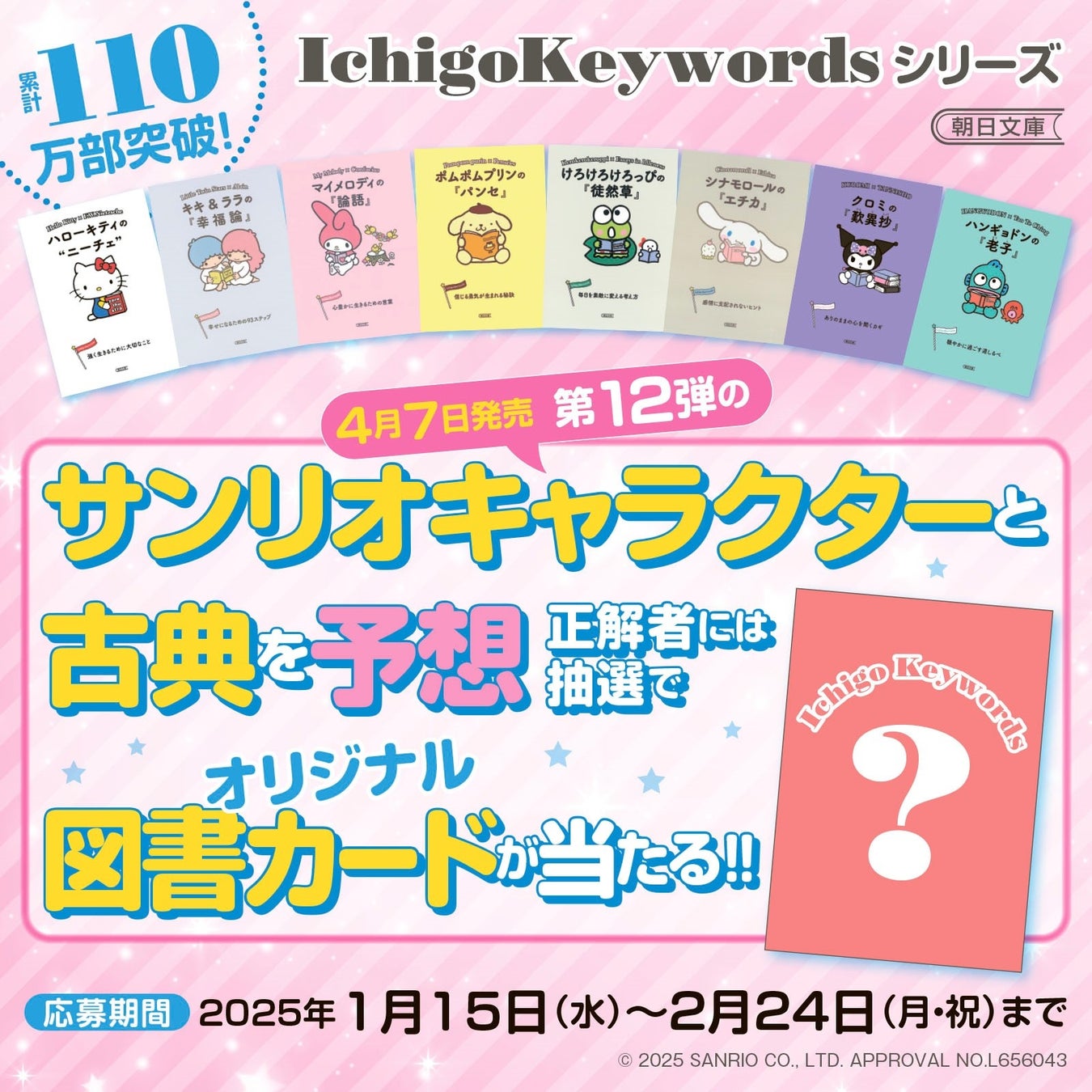 ついにシリーズ累計110万部を突破したサンリオキャラクターズと一緒に名著のエッセンスが学べる「IchigoKeywords」シリーズ。2025年4月7日に第12弾となる書籍が発売されることが決定しました。現在、その発売を記念したクイズキャンペーンを実施中。クイズに答えて素敵な賞品をゲットできるチャンスです!