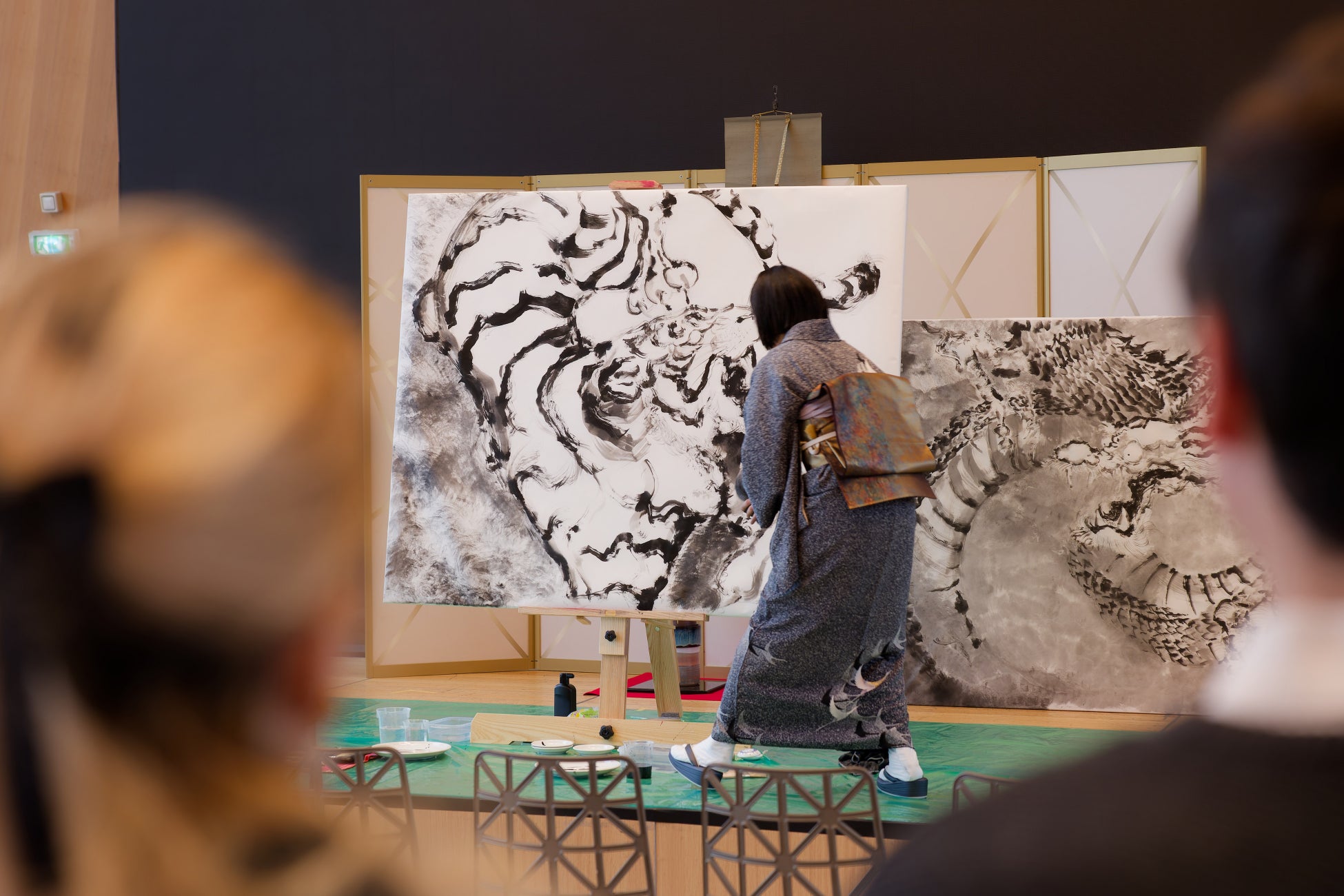 2023年:株式会社TOKYO TOWER様 朝茶の会水墨画コラボ・寄贈2024年:エッフェル塔で開催のtea ceremonyにて水墨画ライブペイント、阪急うめだ百貨店にて水墨画ライブペイント・個展