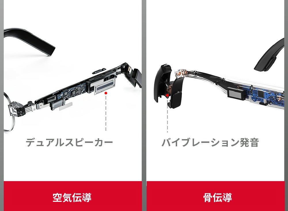 耳にかかるパーツ部分に骨伝導テクノロジーを搭載しています。