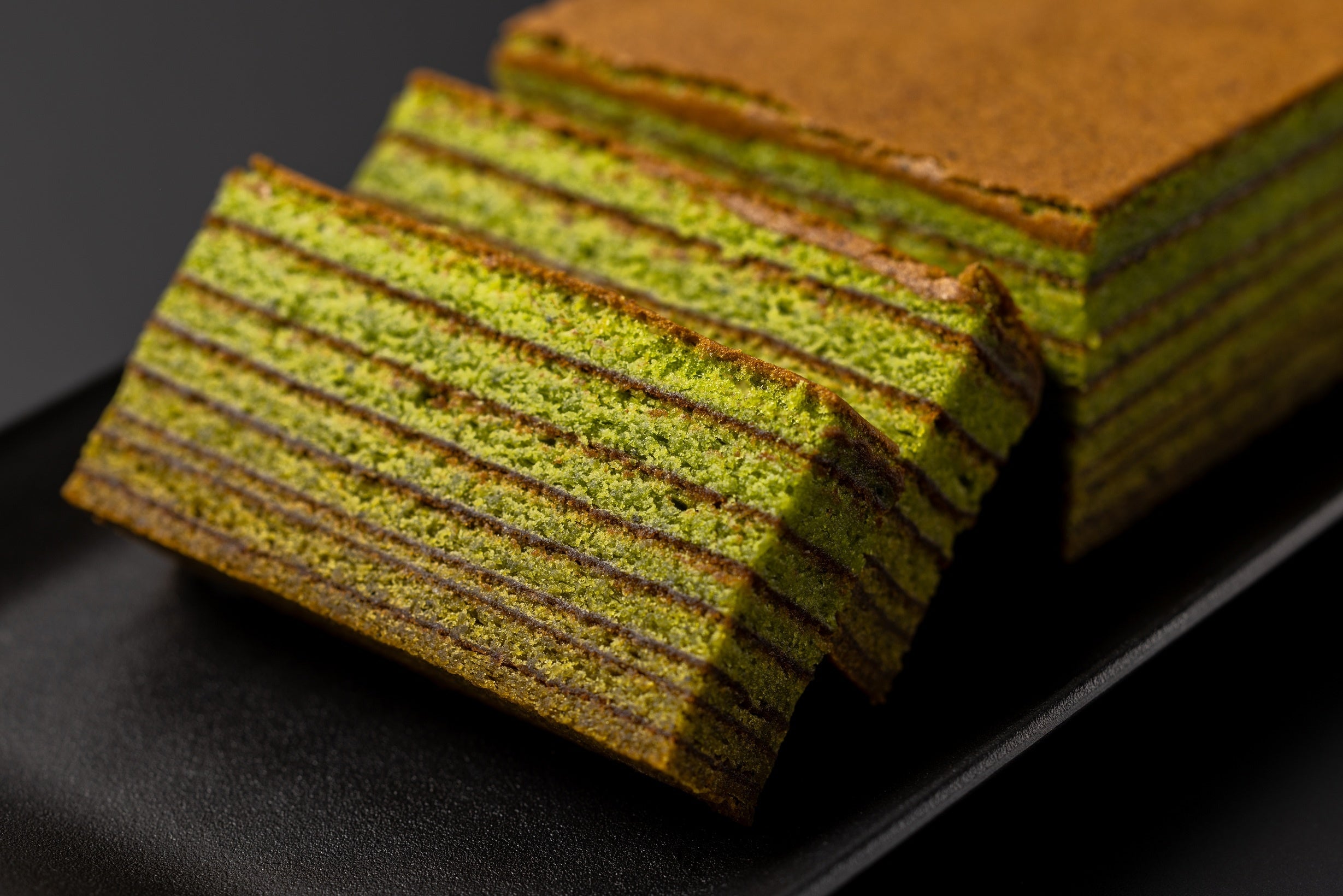 日本遺産認定茶園を持つ「丸利 吉田銘茶園」とのコラボレーションにより誕生した、こだわりの逸品。一層一層を丁寧に手焼きした8層のバウムクーヘンは、しっとりとした食感とともに宇治抹茶の豊かな香りが上品に広がります。
