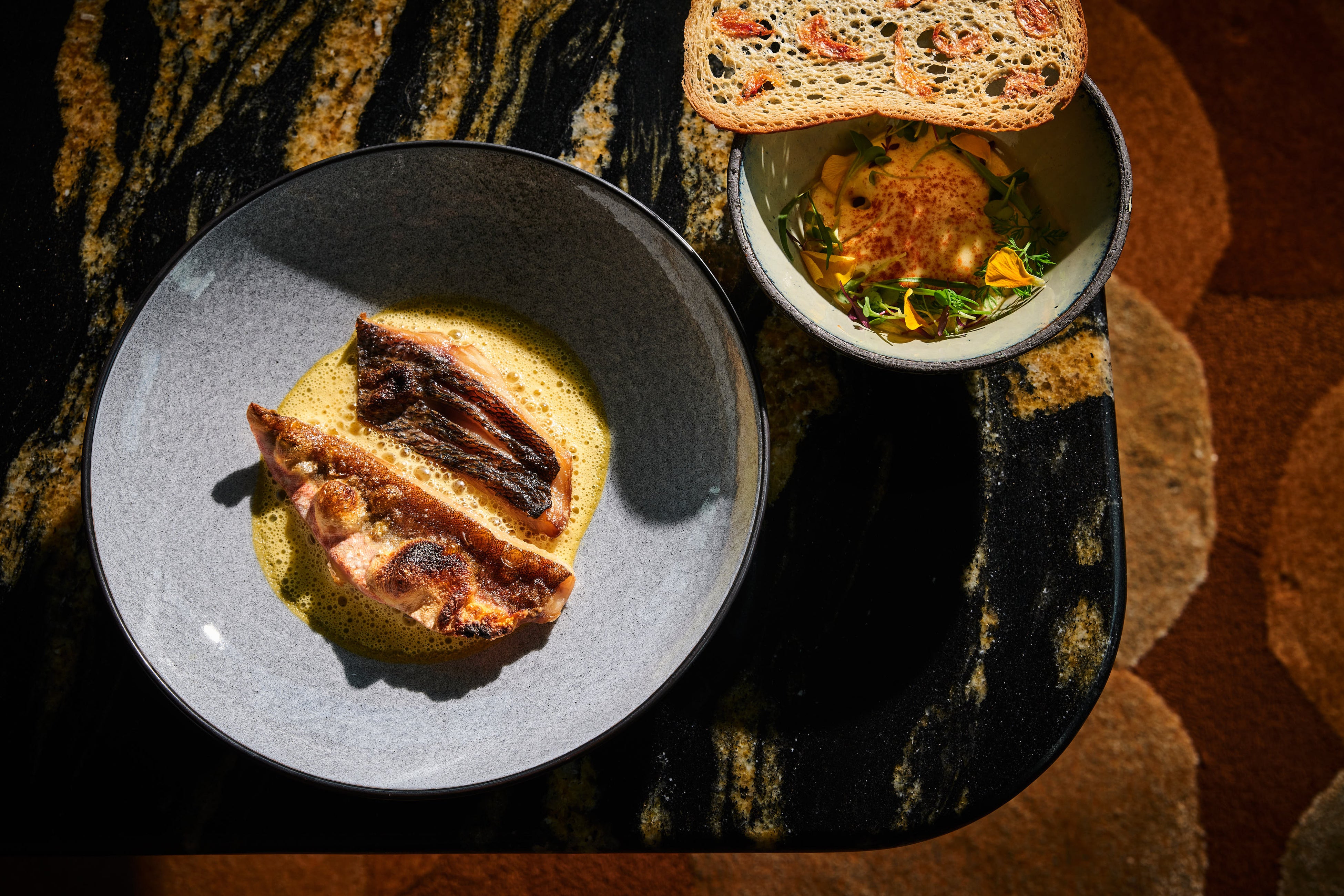 ディナーでは、アラカルトメニューに加え、薪焼きグリルを駆使したコース料理もご提供します。厳選された肉、魚介、旬の野菜を炭火で焼き上げ、香ばしさと旨味を引き立てた一皿に仕上げます。すべての肉料理は、特製のシグネチャーソースやマスタードクリームソースとともにお楽しみいただけます。