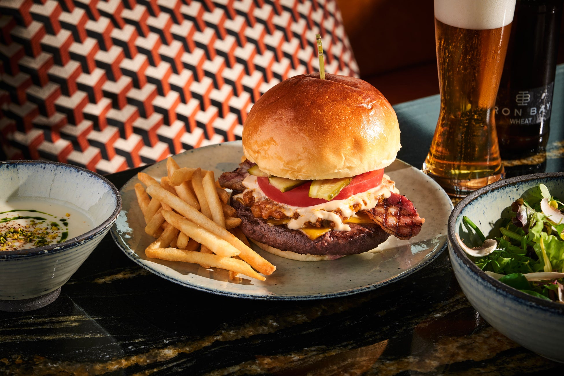 ランチタイムには、ディナーで人気の料理をカジュアルに味わえるアラカルトメニューに加え、「IRON BAY’s 和牛バーガー」など、ランチ限定メニューも登場します。『アイアン・ベイ』ならではの薪焼きグリル料理のクオリティを気軽に堪能できるラインナップです。