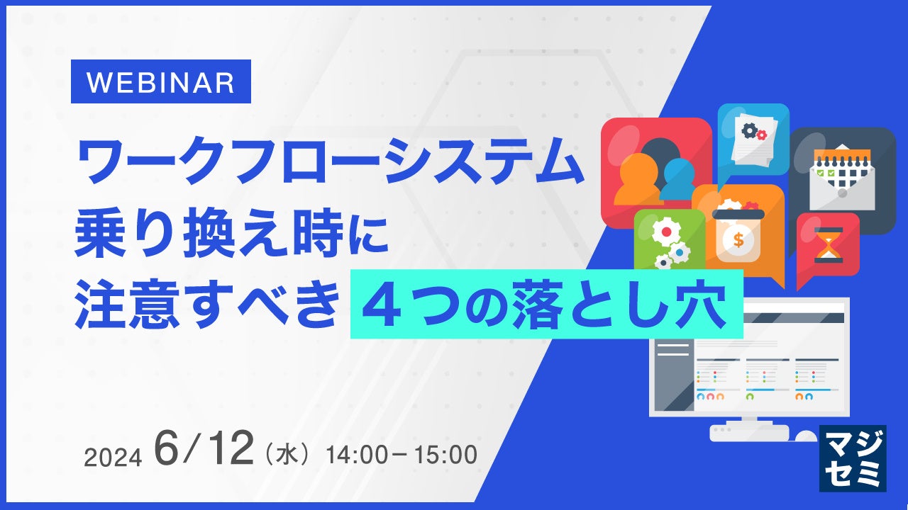 マジセミ株式会社は「ワークフローシステム乗り換え時に注意すべき4つの落とし穴」というテーマのウェビナーを開催します。