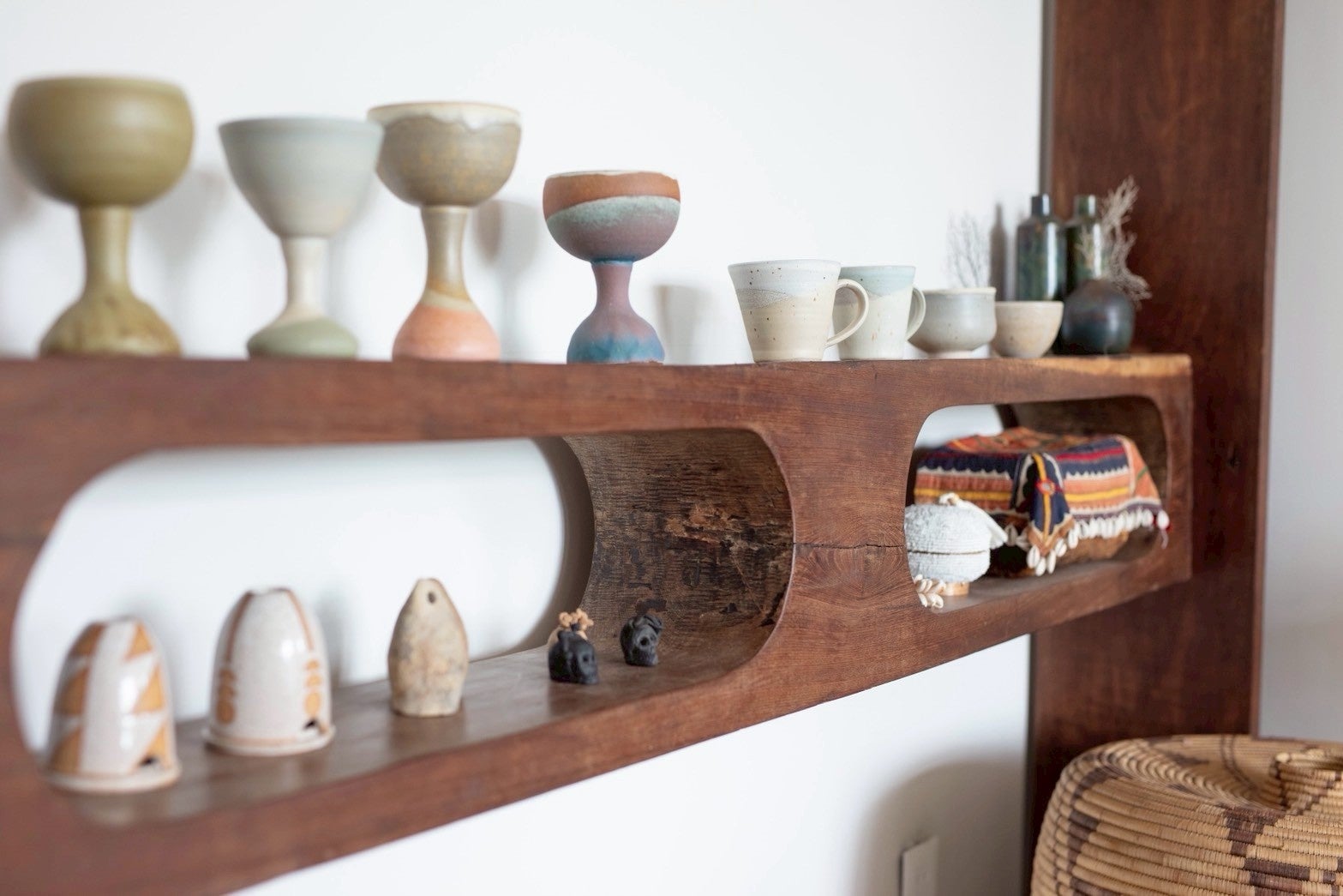 ベニワレンのラグやカンタキルト、セラミックの食器やヴィンテージジュエリー、使い勝手の良いカゴたちが、無造作でありながらセンスよく並んでいる。