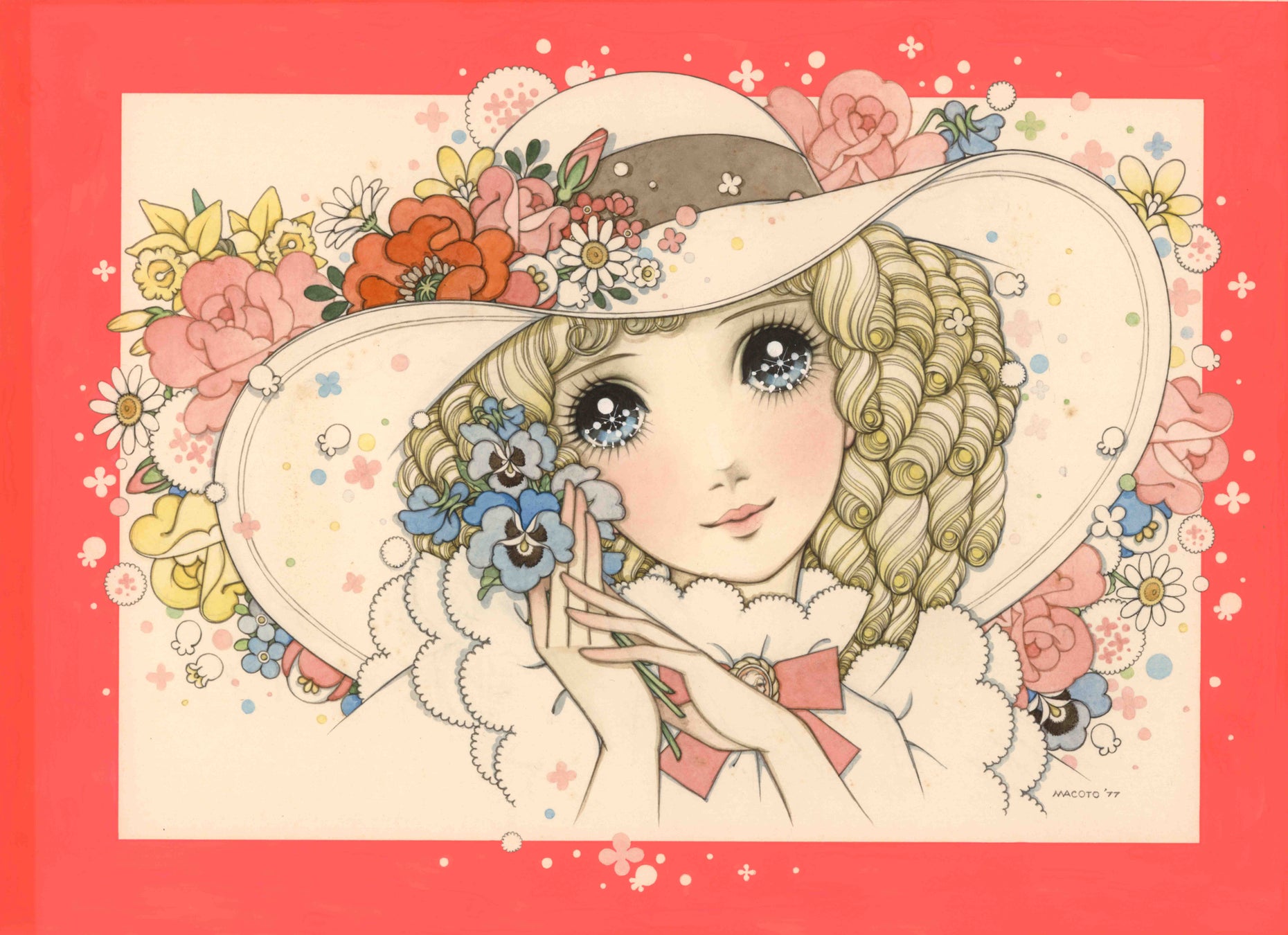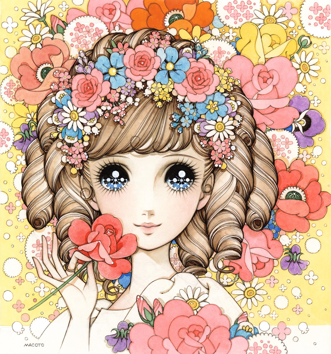 昭和にはノートや色鉛筆などの文具、「少女フレンド」や「マーガレット」といった少女漫画誌の表紙や口絵で一世を風靡。平成には個展活動に力を注ぎ、また、ファッションブランドに起用され、パリコレクションにも登場。令和の今も現役で創作活動を続けています。そんな、伝説の画家、高橋真琴の画業 70 周年を記念する個展を開催いたします。国内外に多くのファンを持つ、少女画の巨匠の世界をお楽しみください。