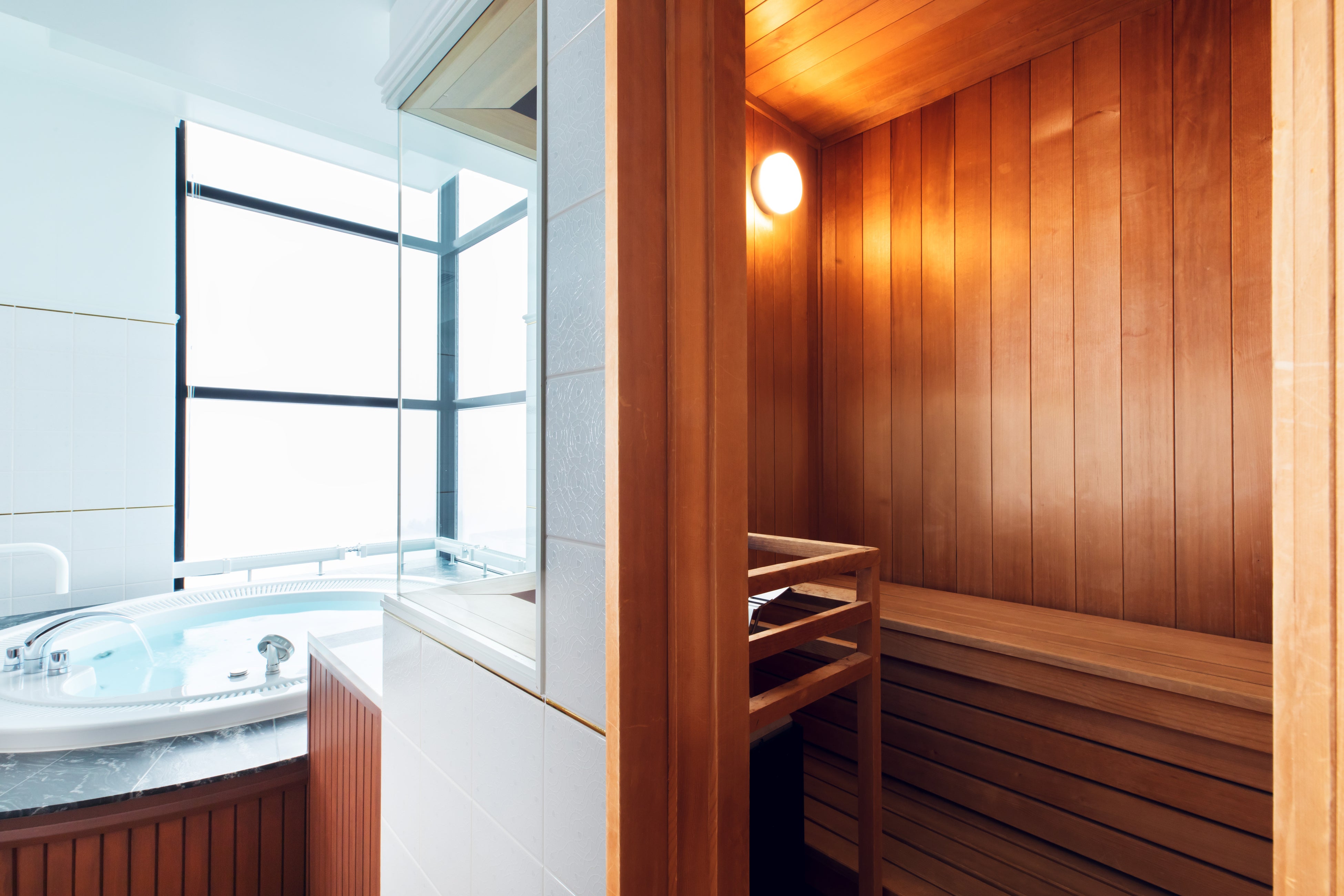 旅の合間に立ち寄れる「半露天風呂」を併設したサウナを完備しています。カラっと熱いドライサウナと水風呂による温冷交代浴は、疲労回復やデトックス効果が期待でき、旅の疲れを短時間でリセットするのに最適です。空港隣接の利便性を活かし、出発前や到着後の「ととのい」体験を提供します。