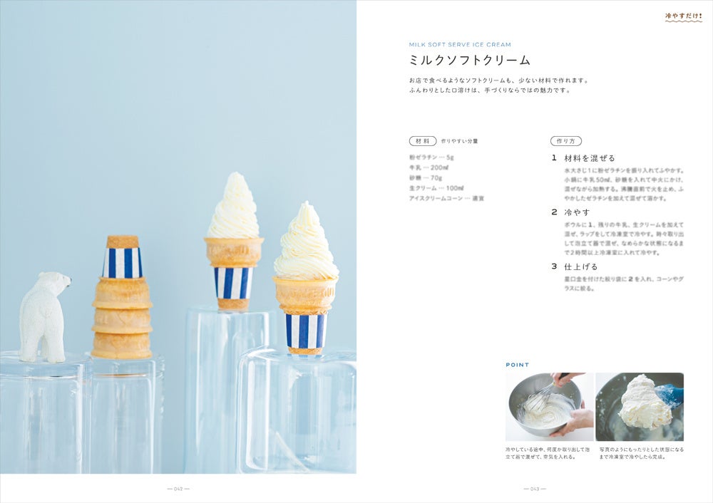 まるごとフルーツ寒天/クッキーフローズンヨーグルトサンド/カラフルシャーベット/ココアヨーグルトムース/マシュマロチョコレートムース/牛乳フルーツ寒天/ミルクソフトクリーム/すいかアイスキャンディ/2層のゼリー/ミルクもち/マンゴープリン/あずきミルクバー/パンナコッタ/チョコレートグラノーラバー