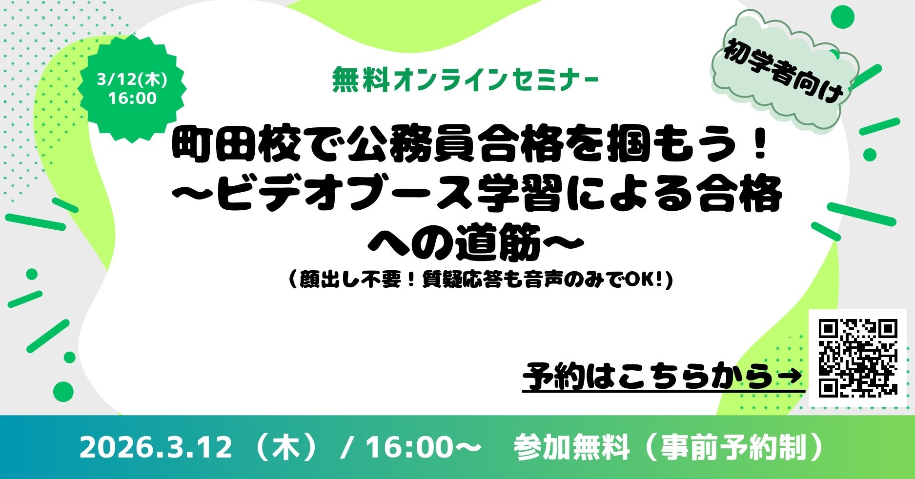 資格取得に向けた教育サービスを展開しているTAC株式会社(東京都千代田区、代表取締役社長:多田 敏男)では、公務員試験を検討されている方へ向けて「町田校で公務員合格を掴もう!~ビデオブース学習による合格への道筋~」を2026年3月12日(木)オンラインで開催します。