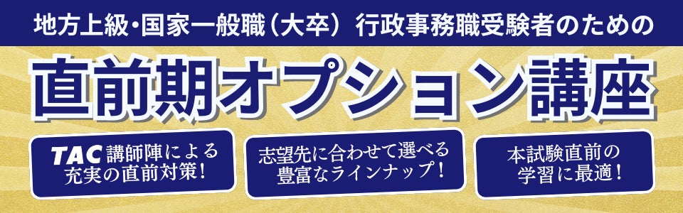 TAC講師陣による、本試験直前におさえておきたいポイントや出題論点予想などを行うオプション講座が開講します。志望先に合わせて選べる豊富なラインナップをご用意。本試験直前の学習に最適です。