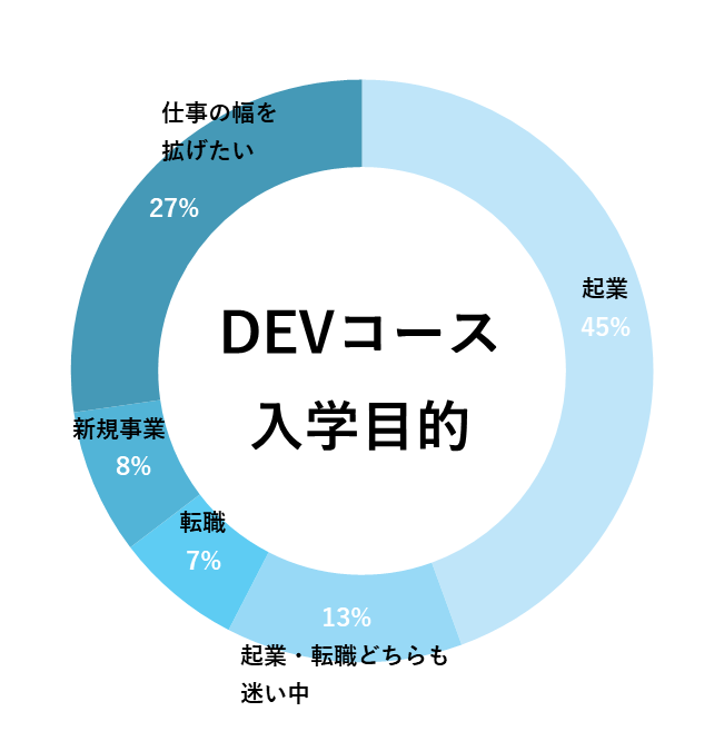 また、週末DEVコースでは、自社で新規事業を立ち上げたい方や、仕事の幅を広げたいと考えている方も多く、所属する会社でエンジニアリングのスキルを役立てたいと考える方が多いようです。
