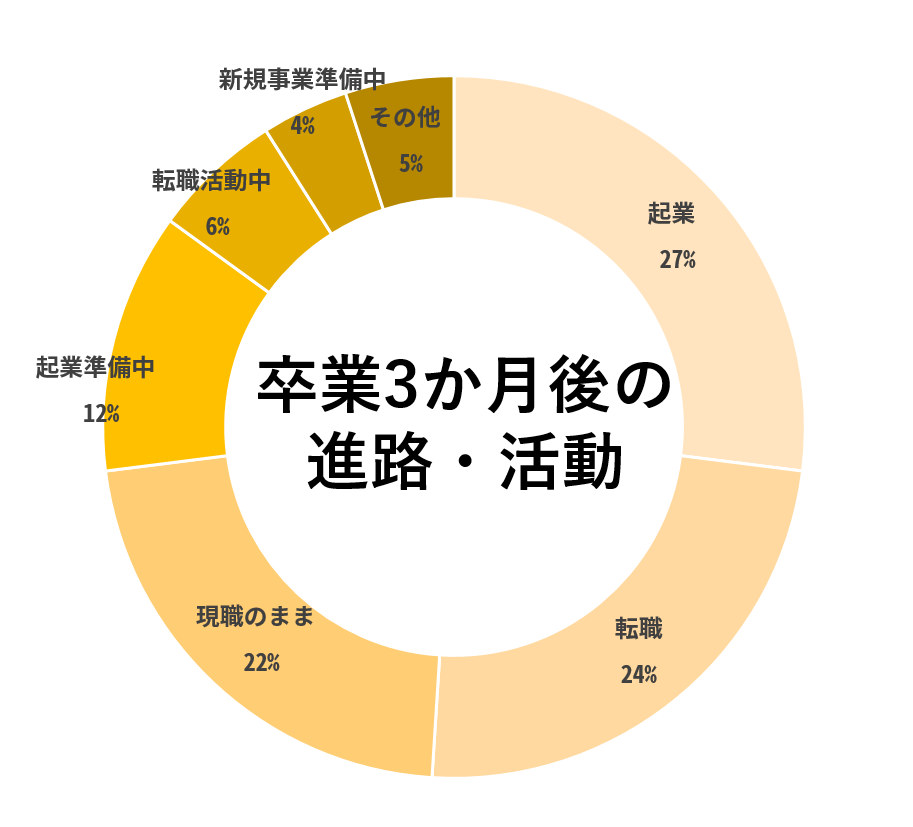 一方でジーズアカデミー発ベンチャーへの就職や、新規事業準備中といった進路も多くみられるようになりました。