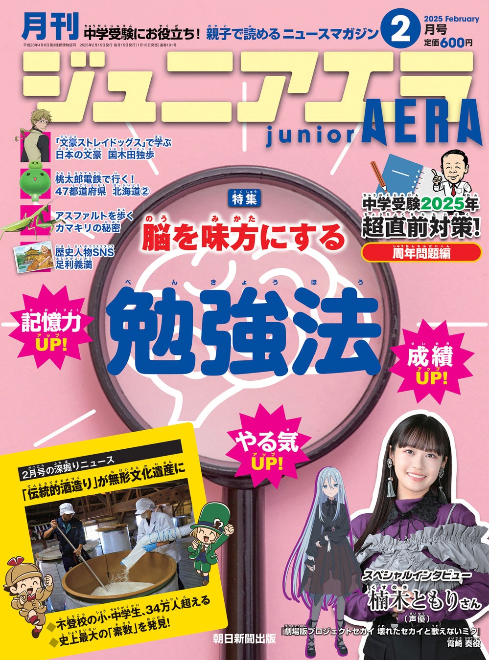 特集は「記憶力、成績UP! 脳を味方にする『勉強法』」/「劇場版プロセカ」宵崎奏役の声優・楠木ともりさんインタビュー/小中学生向けニュース月刊誌『ジュニアエラ』2025年2月号、1月15日(水)発売