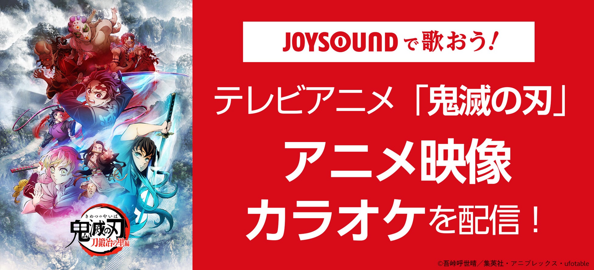 『テレビアニメ「鬼滅の刃」竈門炭治郎 立志編』のオープニング主題歌LiSA「紅蓮華」、劇場版主題歌のLiSA「炎」、遊郭編のオープニング主題歌Aimer「残響散歌」をはじめ、アニメ作品のヒットと共に、数多くのカラオケヒット曲を生み出してきた本作。JOYSOUNDでは、アニメ『鬼滅の刃』の「竈門炭治郎 立志編」「無限列車編」「遊郭編」それぞれの関連曲をアニメカラオケとして配信中です。この機会をお見逃しなく、JOYSOUNDで『鬼滅の刃』のアニメ映像を背景にカラオケをお楽しみください!