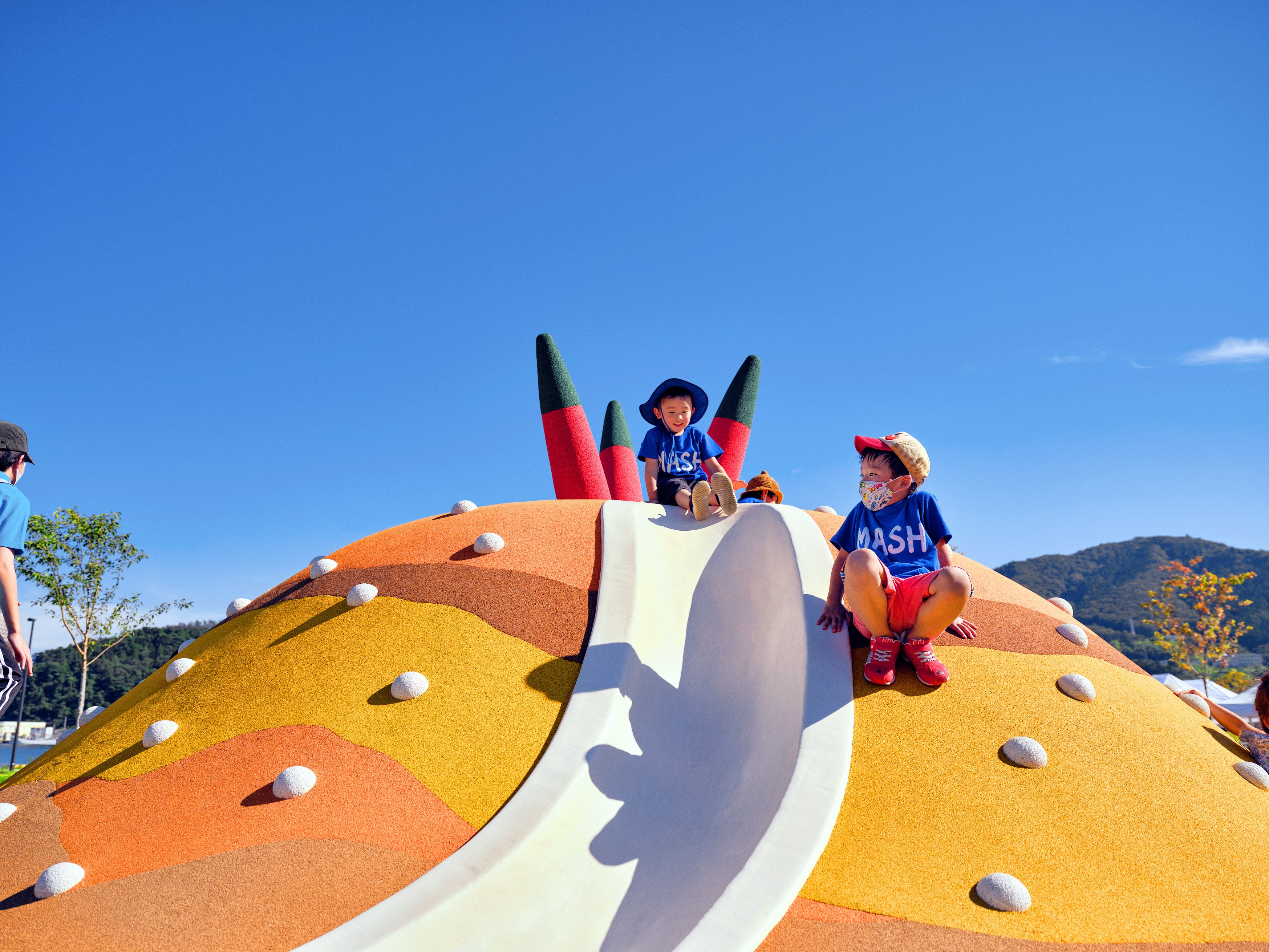 MASH PARK ONAGAWAは、「子どもたちに最高の笑顔を届けたい。」との思いから、宮城県・女川町にマッシュグループから寄贈した公園。2021年8月19日の開園から、今年で2周年を迎えます。