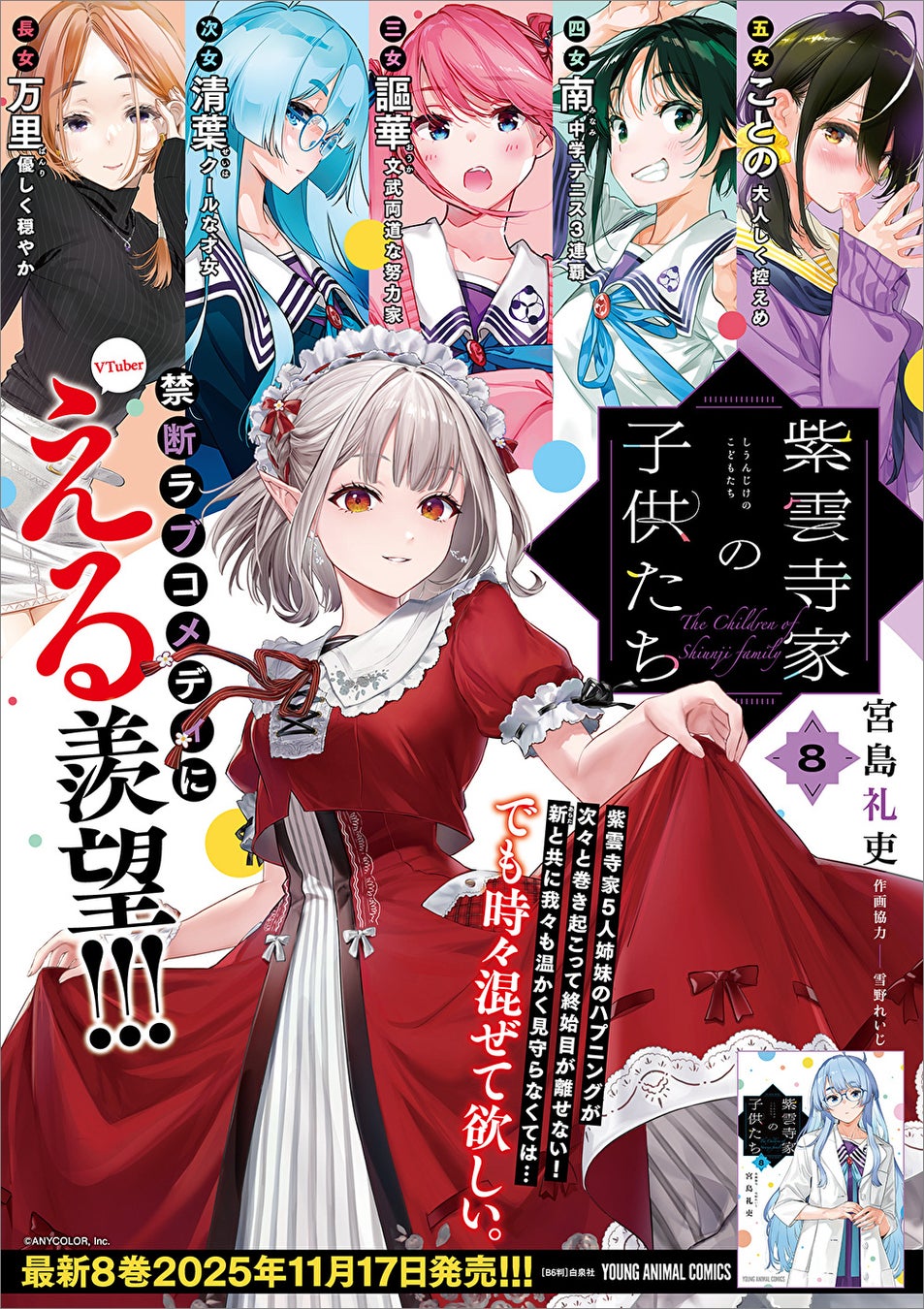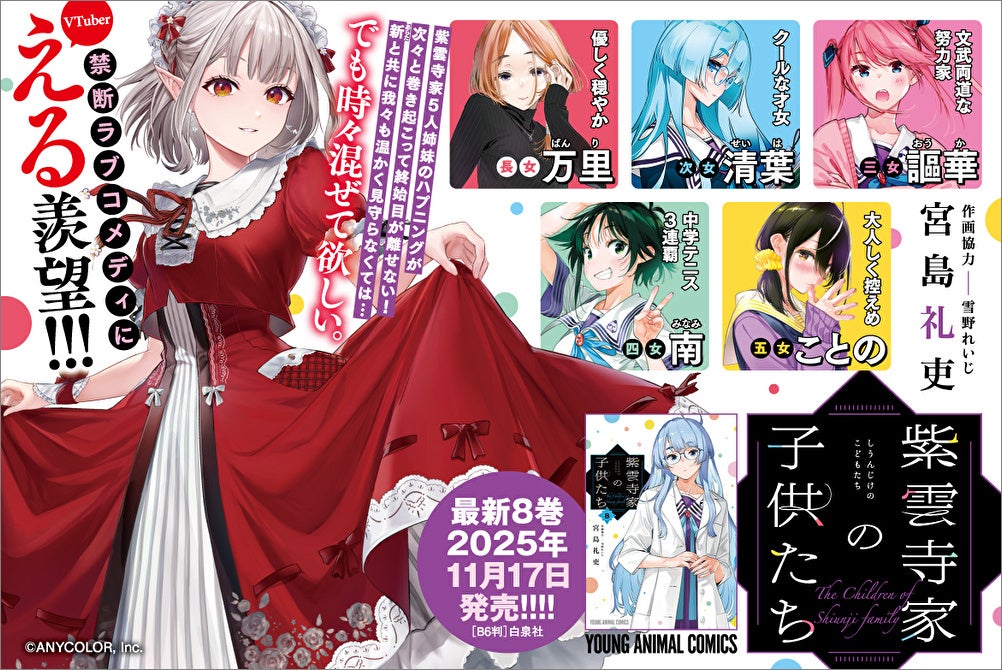 禁断ラブコメディにVTuberえる羨望‼『紫雲寺家の子供たち』8巻(宮島礼吏/著、雪野れいじ/作画協力)が11月17日発売‼