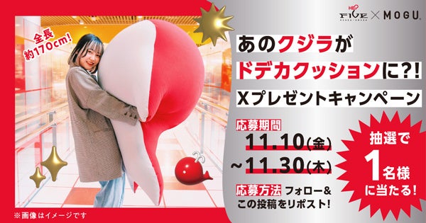 また、MOGU(R)とのコラボで“あのクジラ”をドデカクッションにしたオリジナルグッズが当たるX(旧Twitter)プレゼントキャンペーンや、対象店舗では特別価格の商品やノベルティなどお得な限定サービスを実施するなど、今までも、これからもHEP FIVEにお越しいただくすべてのお客様に感謝を込めたイベントをご用意しました。
