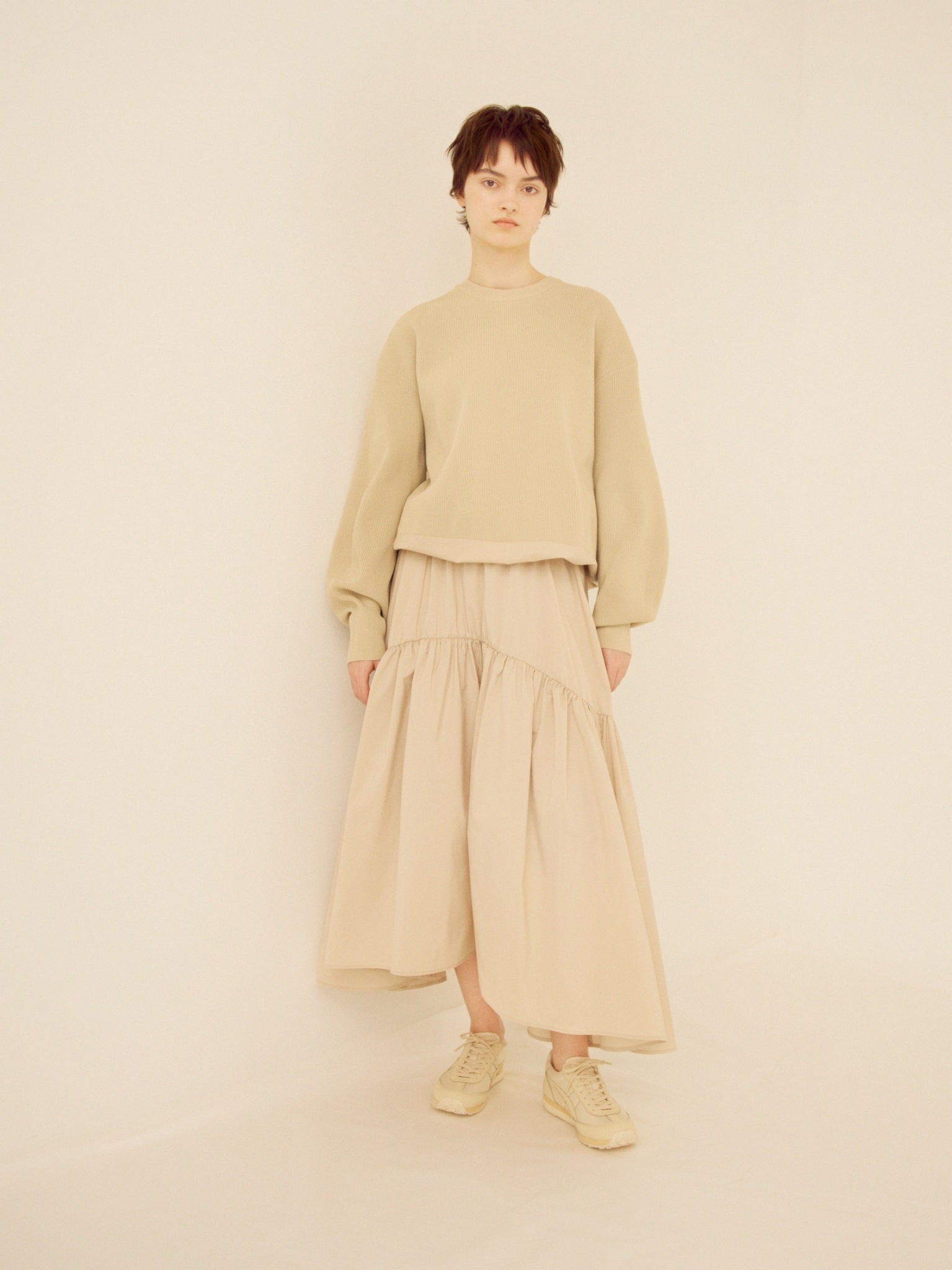 emmiらしいストレスフリーな素材はそのままに、1枚で着映えするアイテムに。