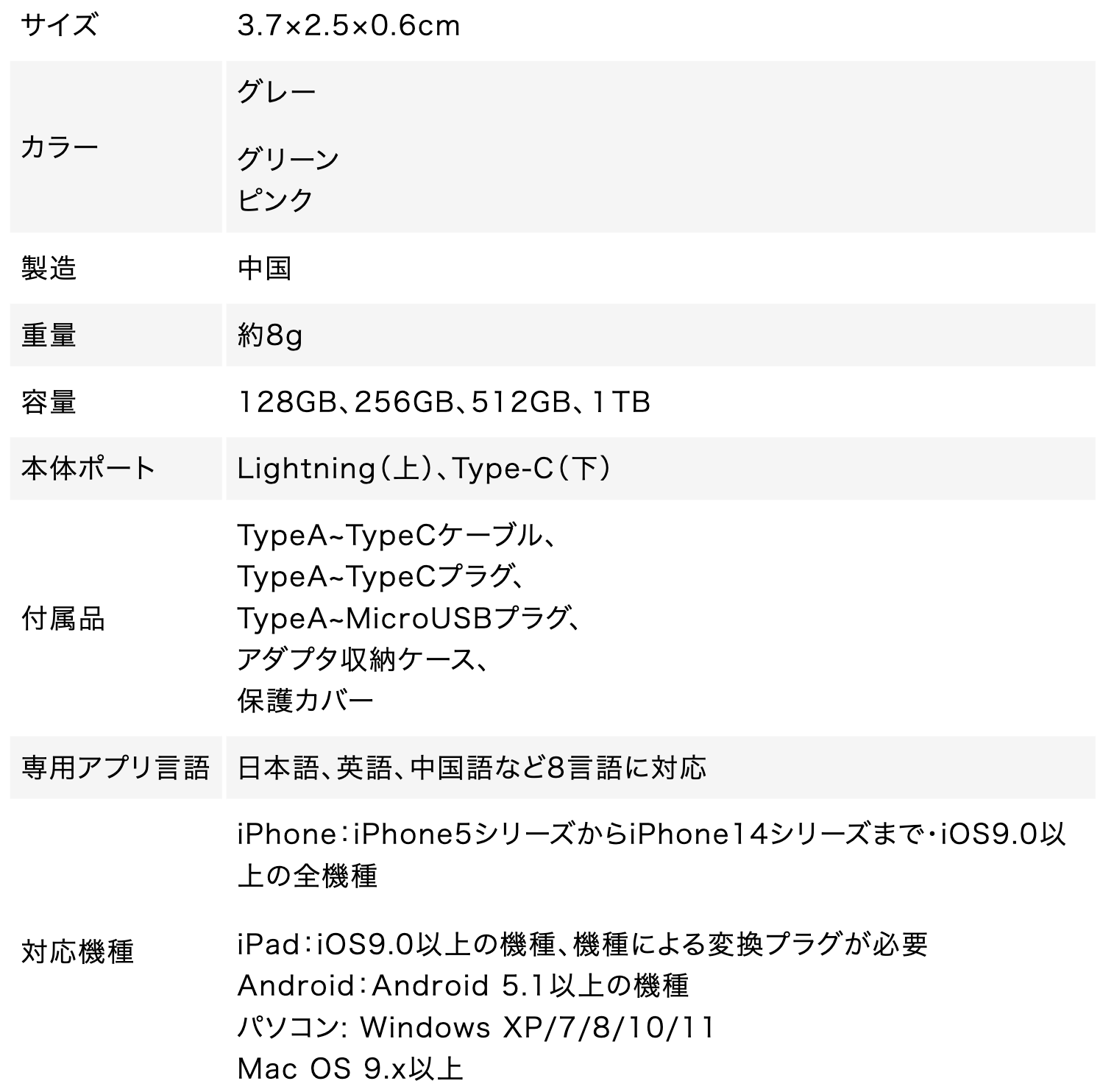 【簡単に使える専用アプリ/プライバシー保護機能付き/Lightning・Type-C対応】