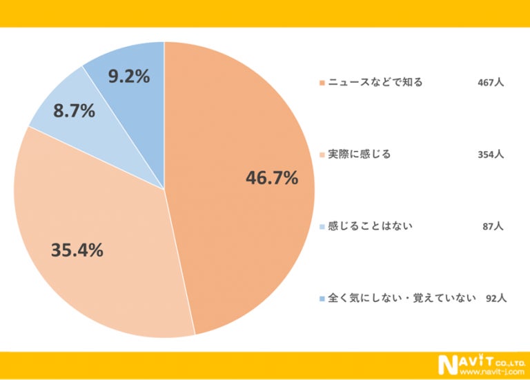 毎年「春一番が吹いた」と感じるかというアンケートでは、「ニュースなどで知る」が46.7%で、「実際に感じる」が35.4%でした。春一番は実際に強い風が吹くので、体感できる人も多いようです。