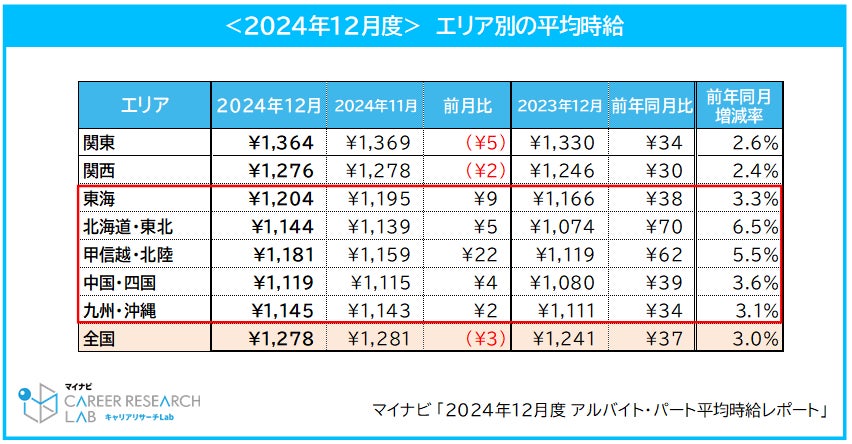 『2024年12月度 アルバイト・パート平均時給レポート』