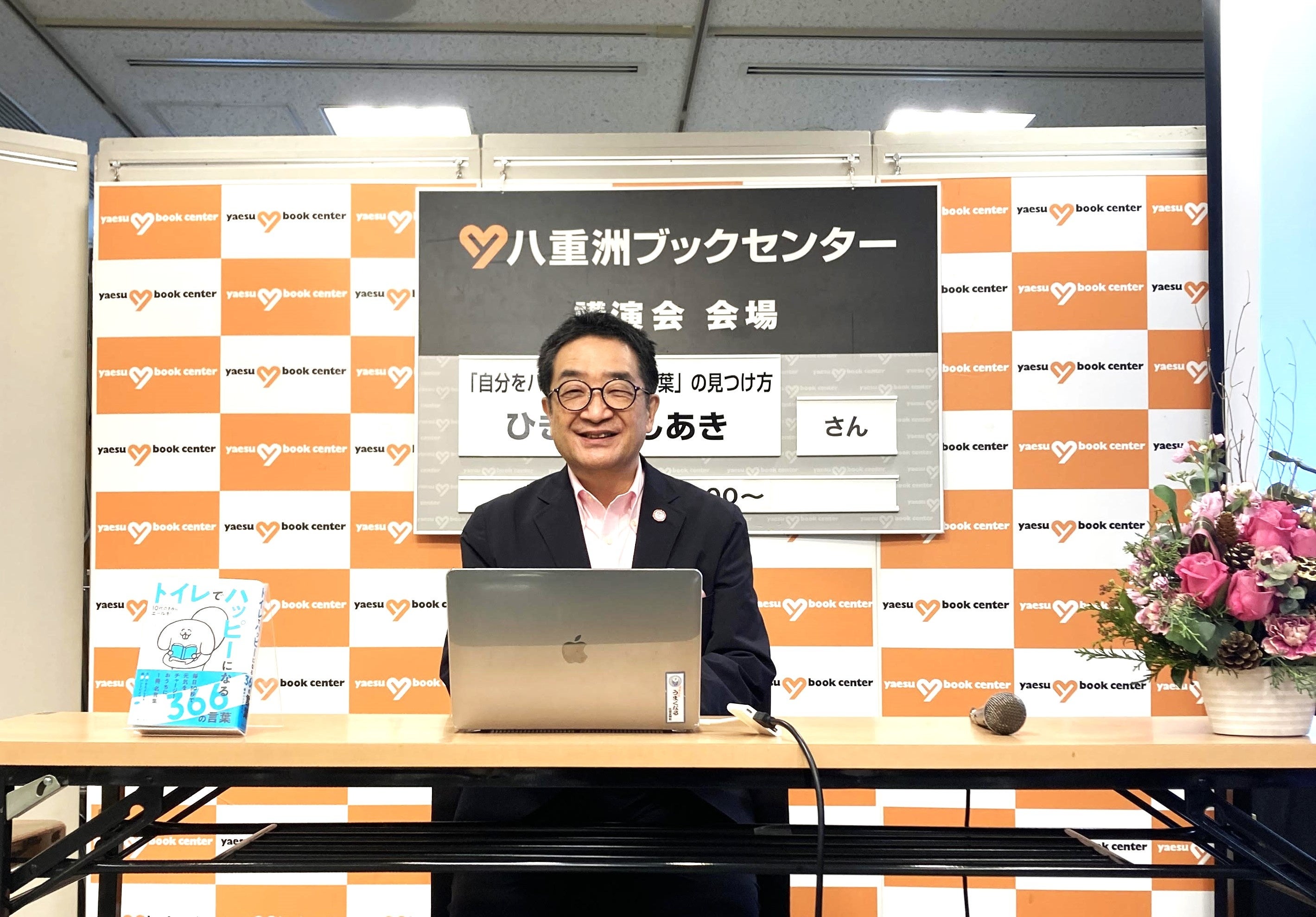 『トイレでハッピーになる366の言葉』は、国内外の偉人の言葉や生き様、人々をいましてめてきたことわざや、四季の行事、習慣など、未来に残したい言葉を366日分、ひきた氏がセレクトし、解釈した一冊。イベント当日、12月25日の言葉「世界は、きみを大好きだ」について、ひきた氏は、「本書に出てくる言葉の中で、もっとも考え、練り込んだ言葉」として紹介しました。