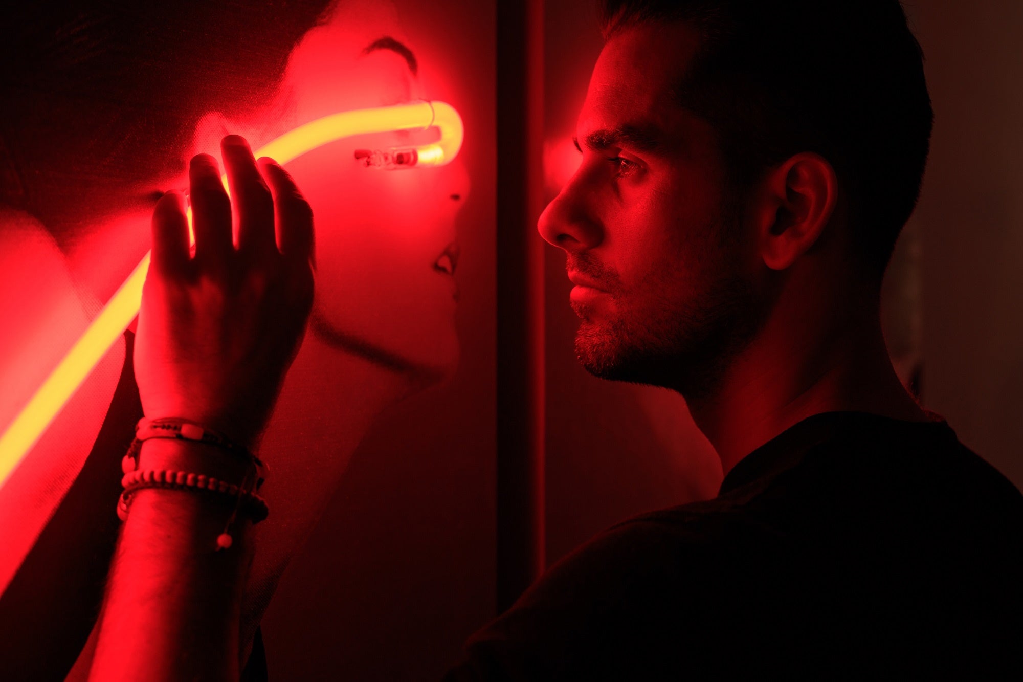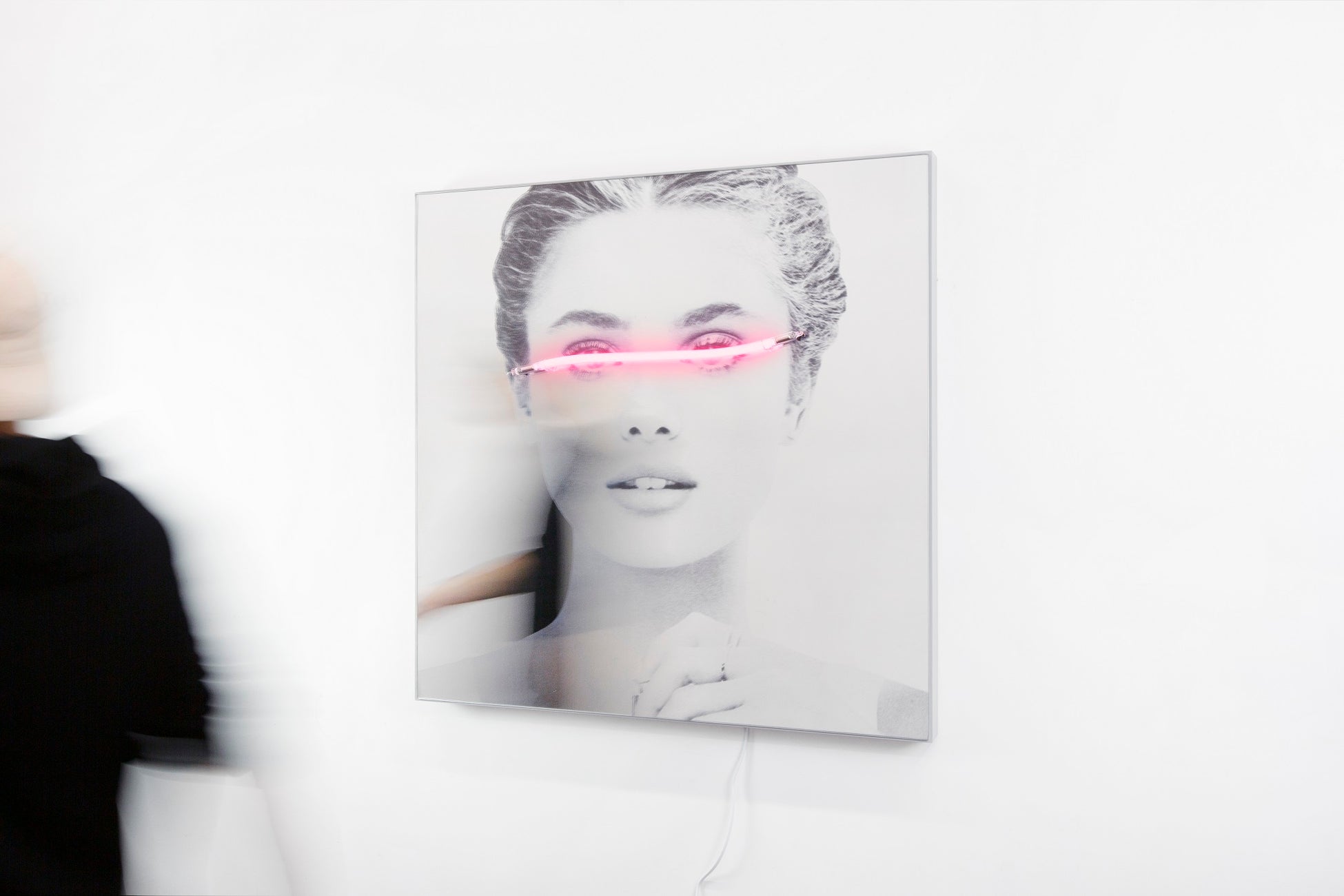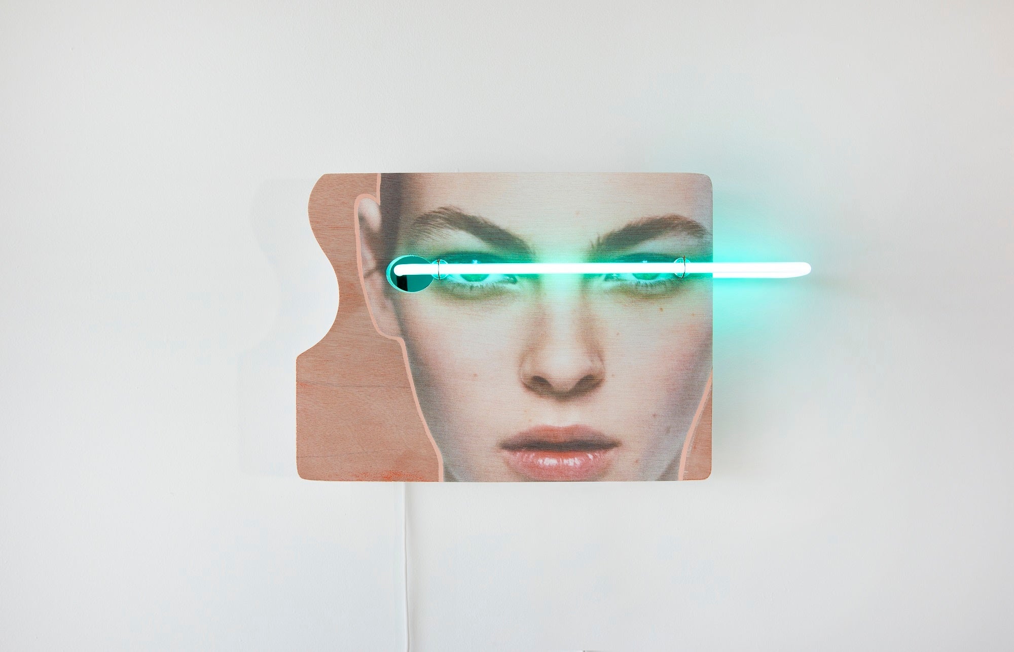 Acrylic, printed ink and neon light on wood: 30.0 x 50.0 x 6.0cm