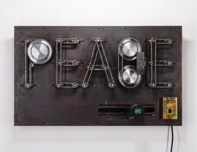 Oil, acrylic, collage, spray paint and neon light on wood: 150.0 x 120.0 x 6.0cm
