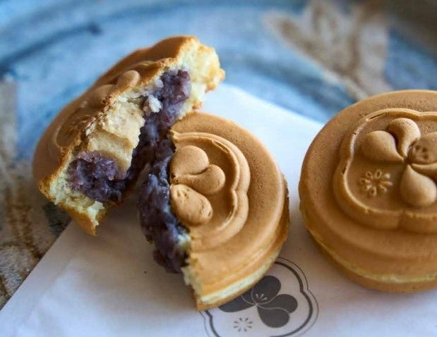 特注の金型で焼かれる、店主の好きなすみれの花が施された饅頭。具材は店主自らが吟味した熊本県産の栗と、対馬産の藻塩がおいしさを引き立てる北海道産小豆の粒餡の組合せ。個数限定で販売するさつまいも餡は大津町の農家から仕入れたさつまいもを約40日間寝かせ、さらに焼くことで甘みを引き出したもの。それらをもちもちの皮で包み込み、シンプルに素材の味が堪能できる饅頭ができあがります。また今回は特別に人気のソフトクリームも出品される予定です。
