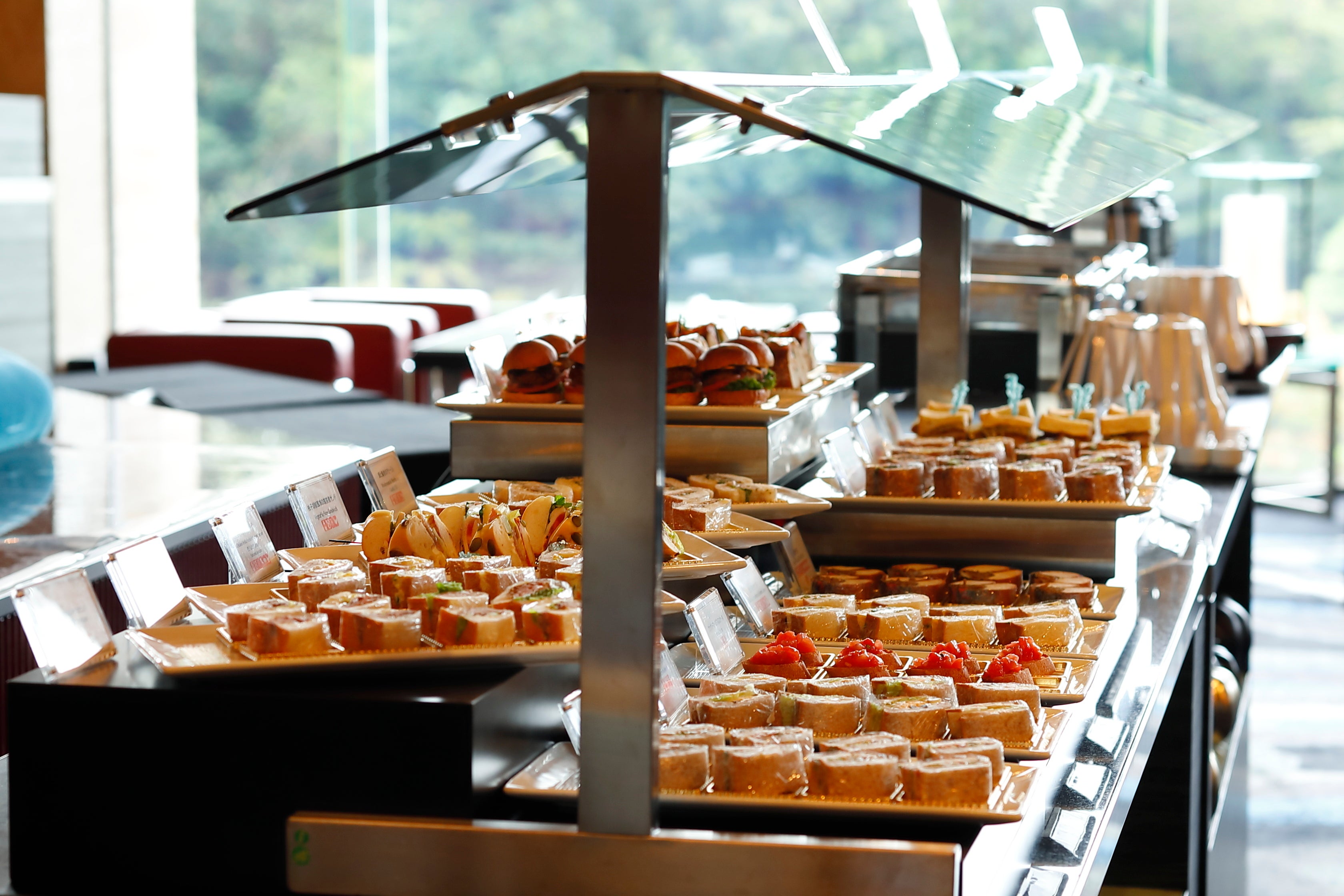 広大な日本庭園を臨む抜群の眺望とともに豊富なスイーツと料理がお愉しみいただける、ガーデンラウンジの『スーパースイーツビュッフェ』。春の新緑の季節には抹茶とメロン、夏にはマンゴーやピーチ、秋には栗とぶどうなど、シーズンに合わせたさまざまなテーマのスイーツがお愉しみいただけることが魅力の1つとして、毎シーズン人気を博しています。