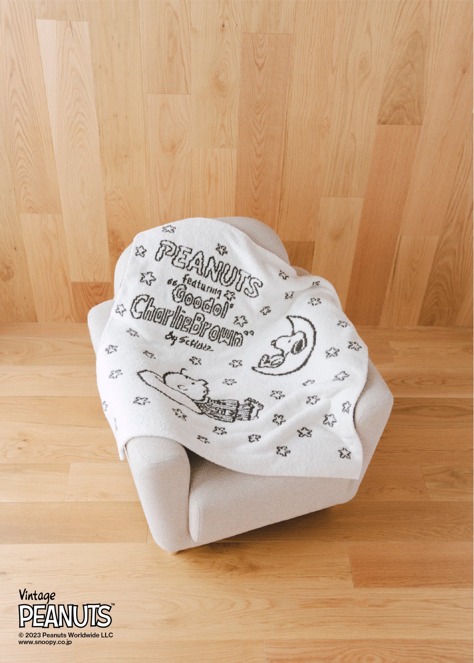 星空をバックに眠っているスヌーピー&チャーリー・ブラウンと一緒に、楽しい夢が見られそうなブランケット。