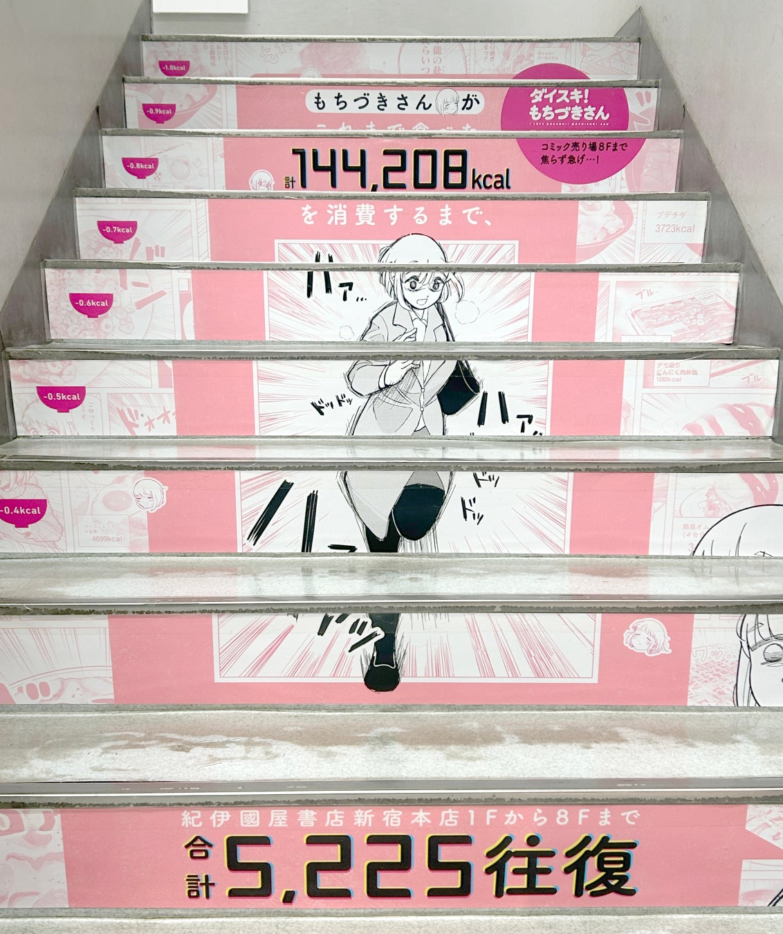 【『ドカ食いダイスキ! もちづきさん』紀伊國屋書店・新宿本店カロリー消費広告(階段)】