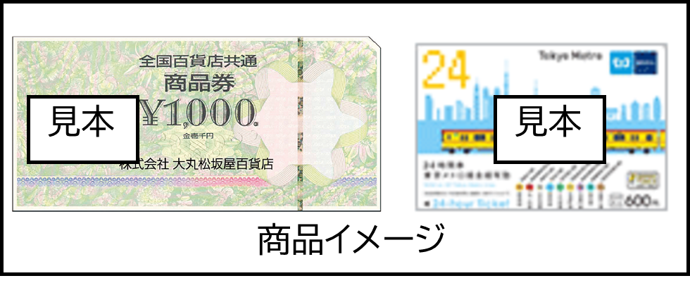 (4)抽選で全国百貨店共通商品券1万円分を10名様に、東京メトロ24時間券3枚セットを50名様にプレゼントいたします。