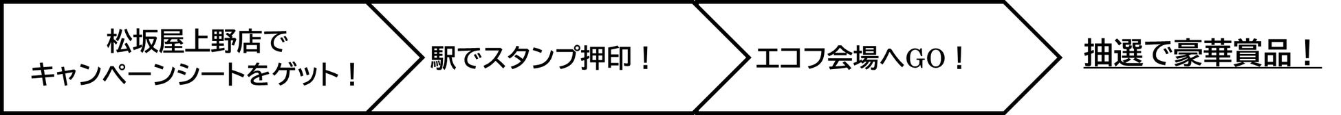 9月13日(金)~10月16日(水)の間、松坂屋上野店にて500円(税込)以上お買い上げいただいたお客様に、参加者専用のキャンペーンシートを配付いたします。その後、10月17日(木)~21日(月)の間で、キャンペーンシートを持って東京メトロ線にご乗車のうえ、上野広小路駅または仲御徒町駅にて専用スタンプを押印いただき、松坂屋上野店6階エコフ会場に設置の専用BOXに投函いただくと、豪華賞品が当たる抽選に応募いただけます。