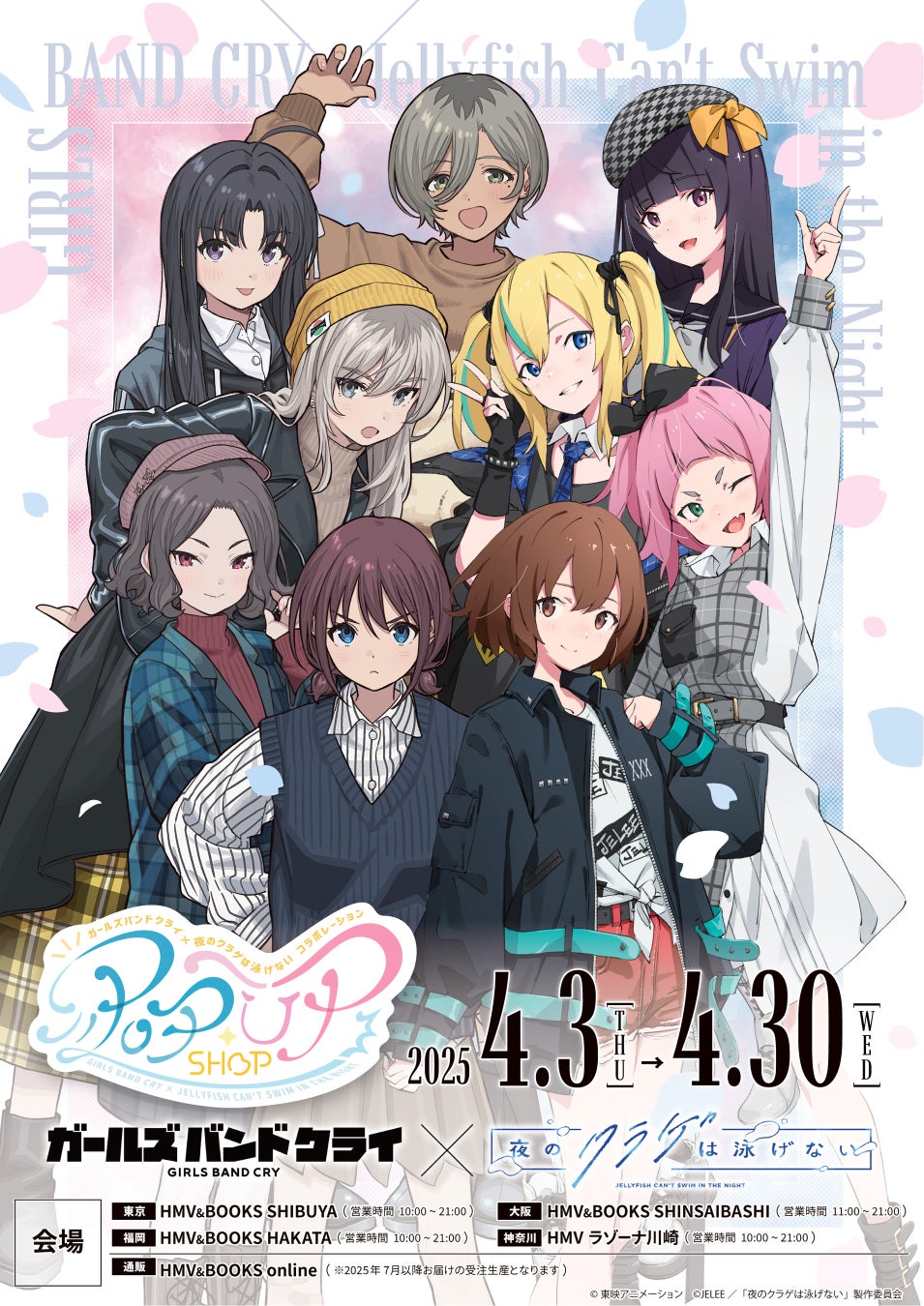 『ガールズバンドクライ×夜のクラゲは泳げない コラボレーションPOPUP SHOP』が全国のHMV,HMV&BOOKS4店舗にて4月3日(木)より開催決定!