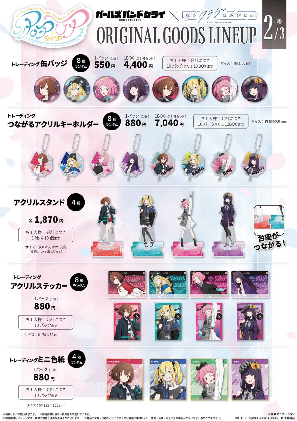 2024年4月に放送されたオリジナルTVアニメ「ガールズバンドクライ」と「夜のクラゲは泳げない」のコラボレーションPOPUP SHOPの開催が決定!