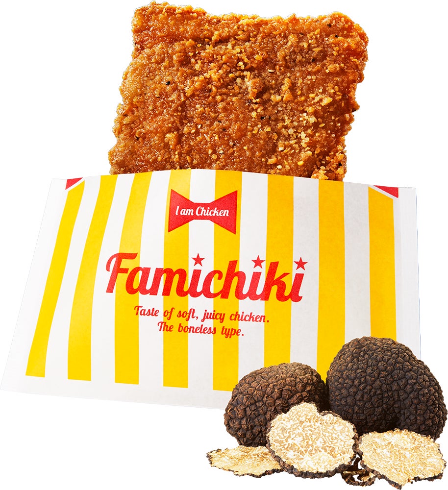 【内容】イタリア産黒トリュフパウダーを使用したファミチキです。黒トリュフの豊かな香りとチキンの旨みが絶妙にマッチした、ワンランク上の味わいです。