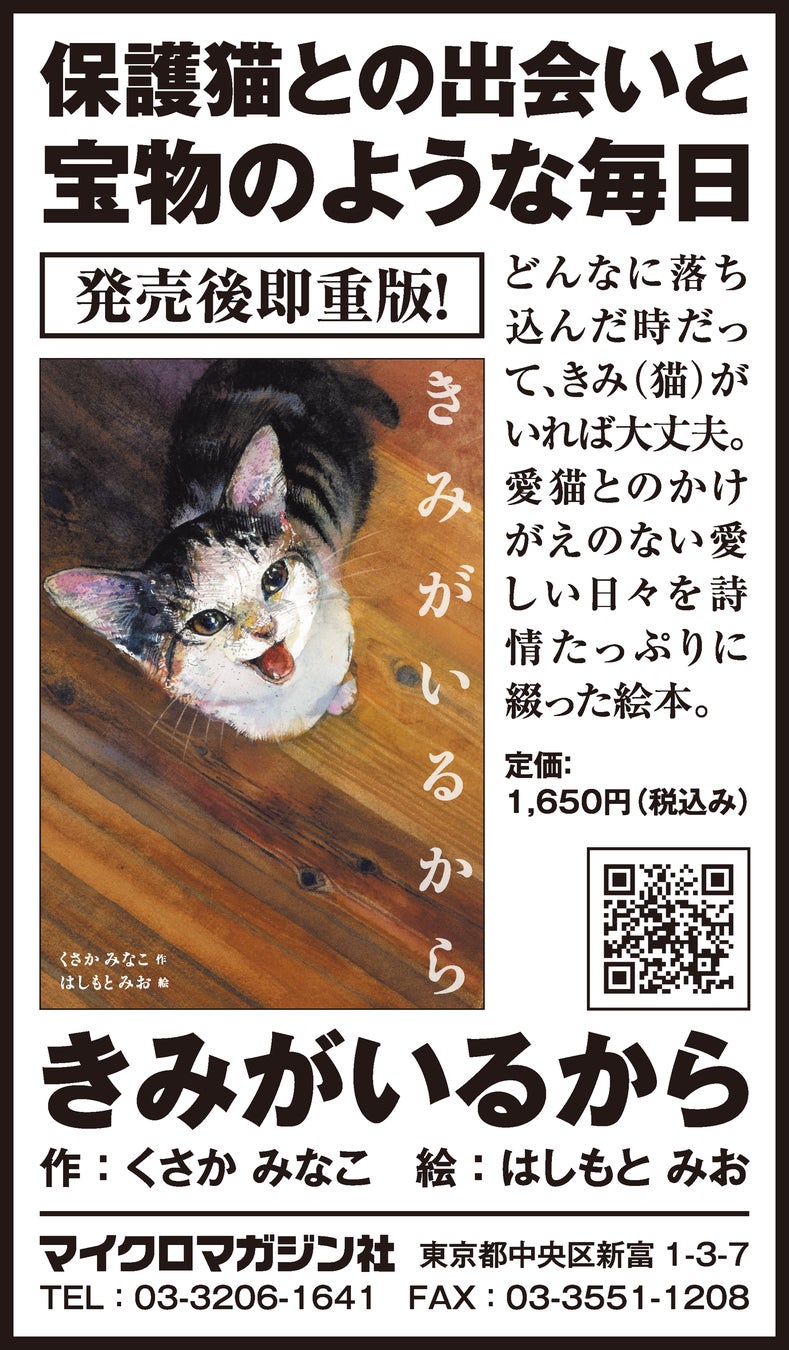 マイクロマガジン社(東京都中央区)は、絵本『きみがいるから』の広告を2月22日(土)の朝日新聞に掲載いたしました。