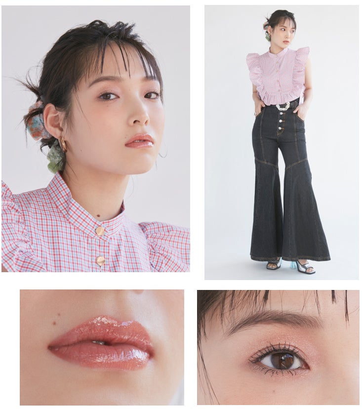 リップはグロスのツヤ感でフレッシュな仕上がりに。